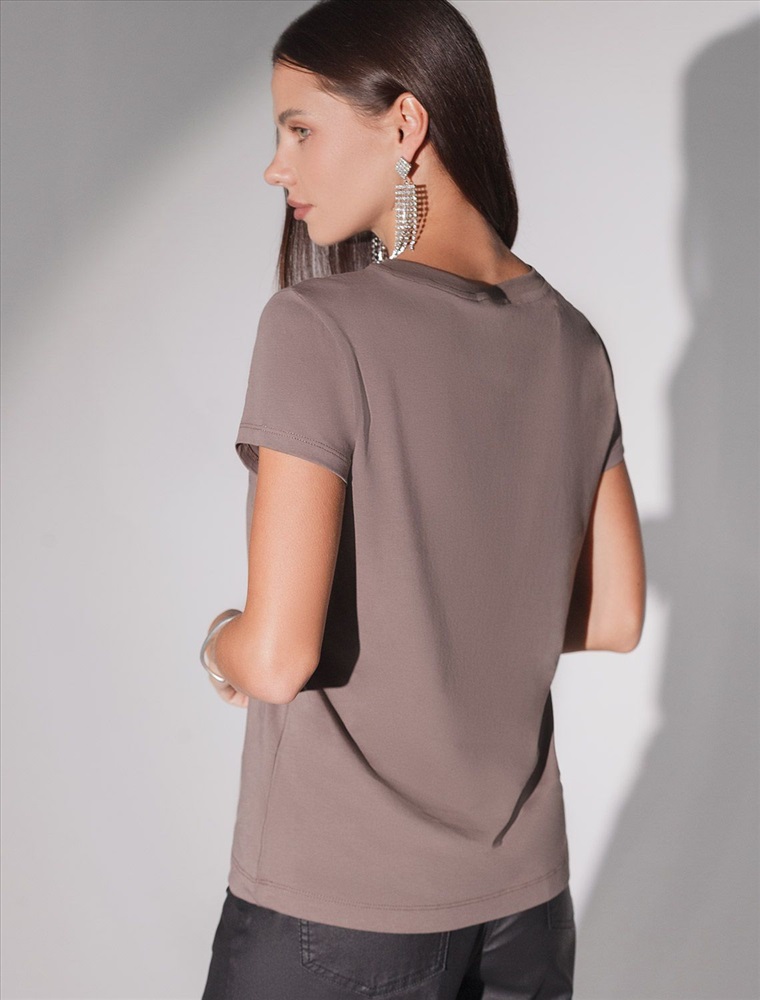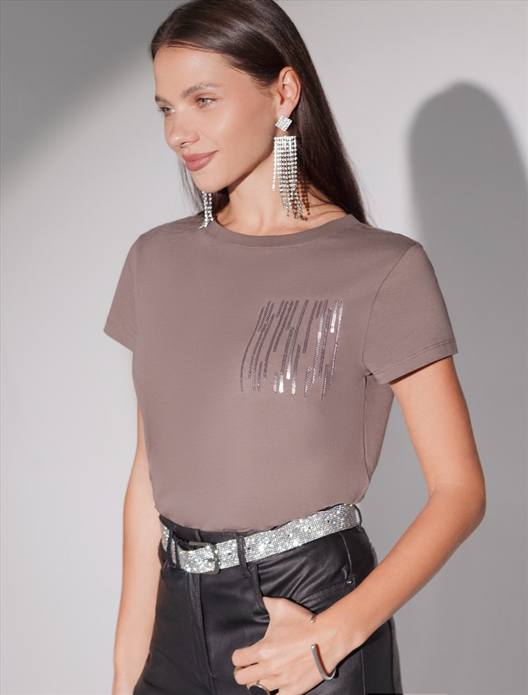 Плотность: 150 Г/м2 Футболка кофейного цвета идеально подходит для вечеринки и создания яркого образа. Оригинальный принт из серебристых пайеток придает изделию шикарный вид, который привлечет внимание на любом мероприятии. Модель с круглым вырезом и классическим коротким рукавом обеспечивает свободу движений и комфорт в носке. Такой фасон изделия подходит на большие размеры, гармонично сидит на фигуре и помогает создать легкий акцент на достоинствах. Аккуратный круглый вырез красиво подчеркивает шею и делает образ элегантным, сохраняя актуальность для разных случаев — от рабочих встреч до вечерних прогулок и праздничных мероприятий. Модель изготовлена из премиального хлопка с добавлением эластана. Добавление эластана в состав изделия способствует формоустойчивости. Эта нарядная футболка подходит для создания образа на каждый день и идеально подойдет на выход. Модель не мнется, что делает ее практичным вариантом для активных женщин, которые ценят стиль и удобство. Женская футболка подчеркнет вашу индивидуальность и позволит вам выглядеть привлекательно в любой ситуации. Легкость в уходе и высокая износостойкость делают ее незаменимой вещью в вашем гардеробе. Благодаря сочному дизайну и качественной отделке, футболка легко сочетается с различными элементами гардероба, позволяя создавать уникальные комплекты для разных случаев. Она станет ярким акцентом в вашем гардеробе и подарит уверенность на любом событии. Такой вариант одежды станет отличной базой для стильного и эффектного образа на праздничное событие. Комментарии к товару