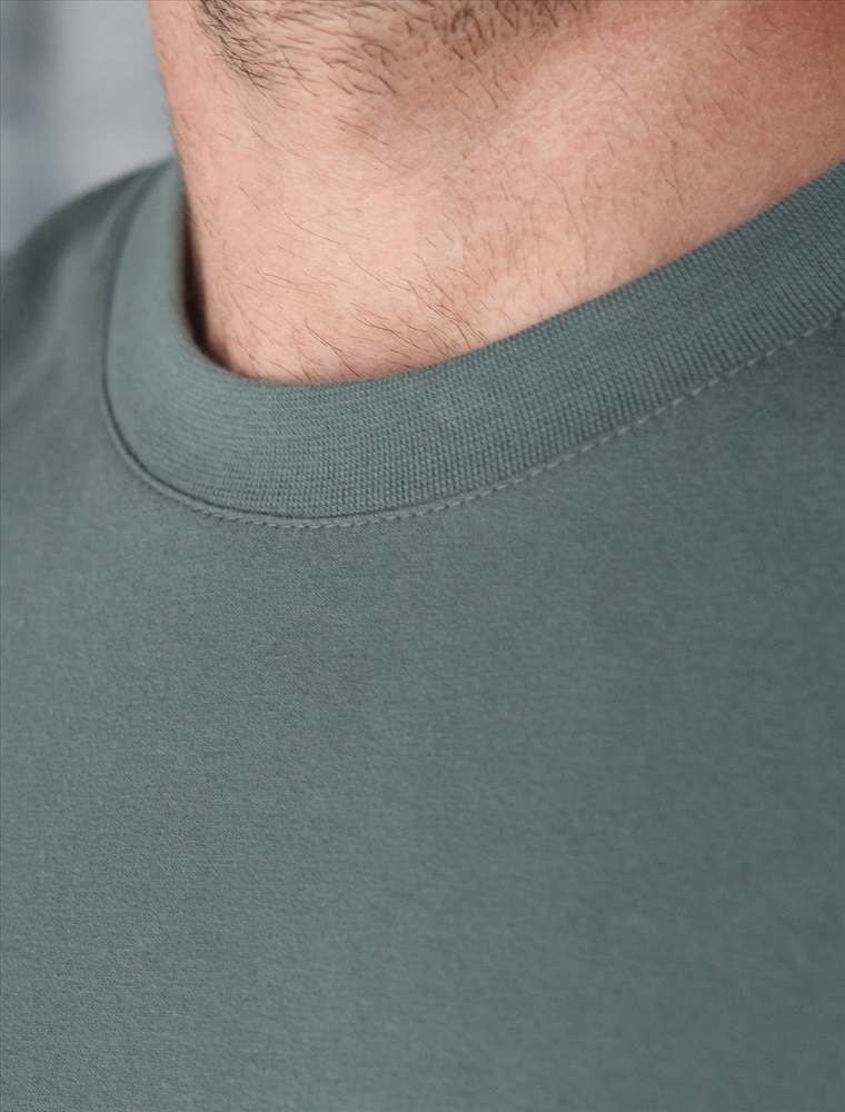 Базовая футболка темно-оливкого цвета из премиального хлопка с эластаном полуприлегающего кроя станет универсальным решением для любого случая. Прямой крой обеспечивает комфортную посадку на любую фигуру, включая большие размеры, подходит как на низкий, так и на высокий рост. Выполненная из натуральной ткани, она обладает дышащими свойствами, а за счет эластичности сохраняет форму даже после длительного ношения и многочисленных сирок.