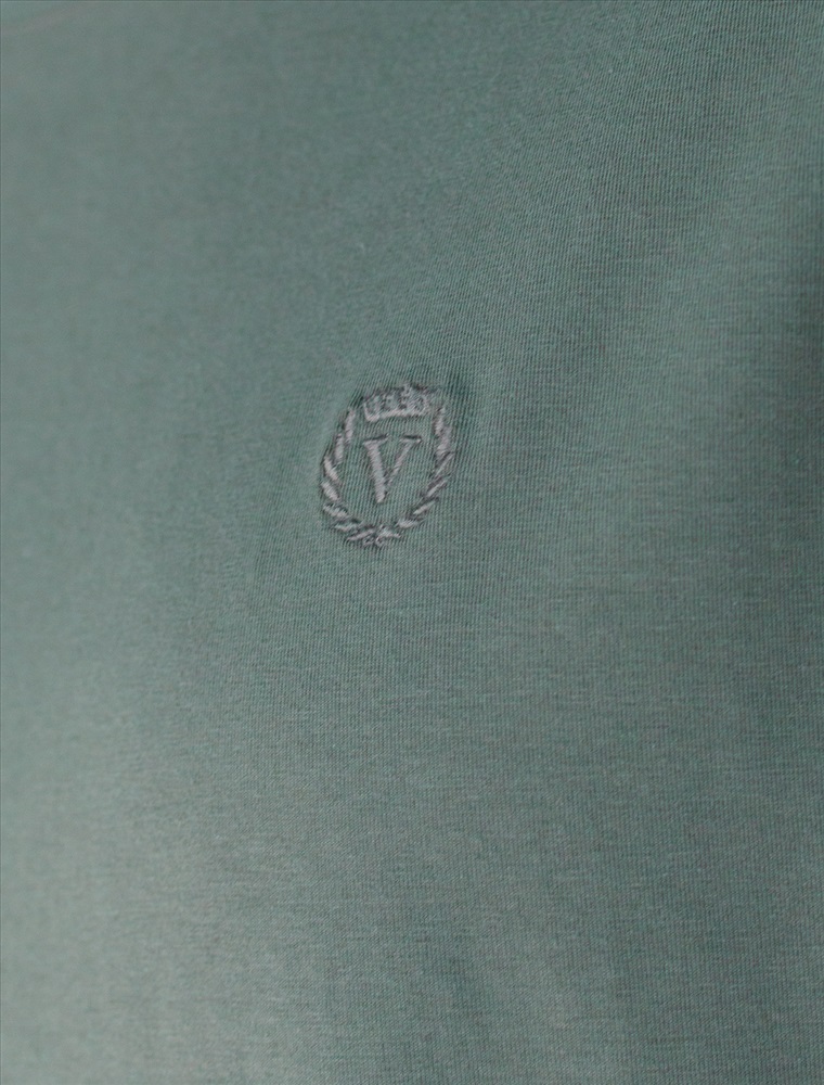 Однотонная футболка выполнена в минималистичном стиле, дополнена аккуратной вышивкой на груди в виде буквы V в тон изделия, а так нашивкой на рукаве из эко-кожи с логотипом VILATTE. Подходит как классический вариант для работы в офисе под пиджак, так и для повседневной носки или занятий спортом. Мягкая ткань приятна к телу, не вызывает дискомфорта и идеально подходит для дома или летних прогулок благодаря короткому рукаву.
