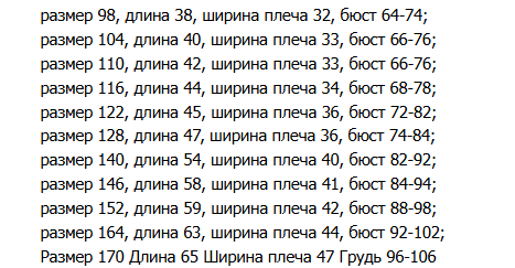 Размер: 98, 104, 110, 116, 122, 128, 140, 146, 152, 158, 164
