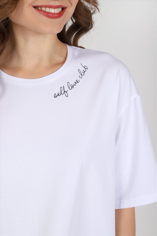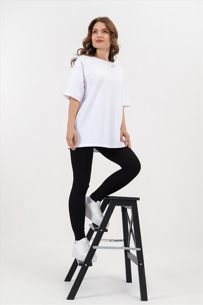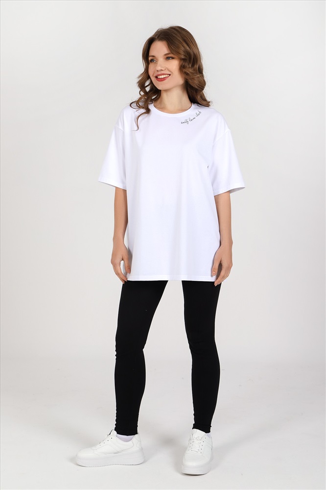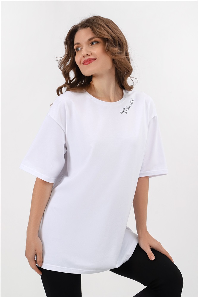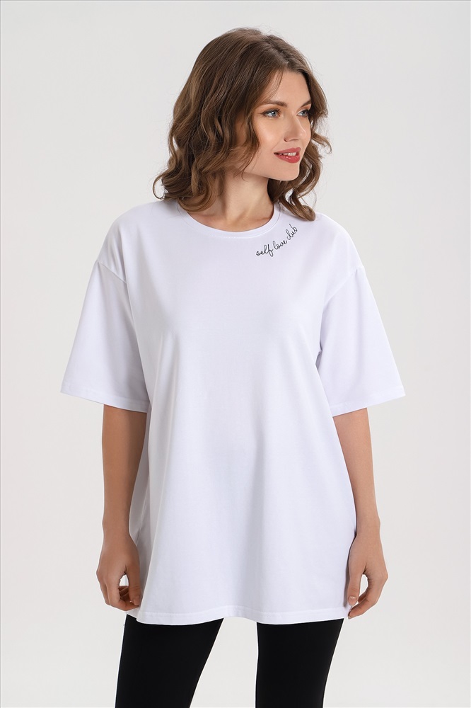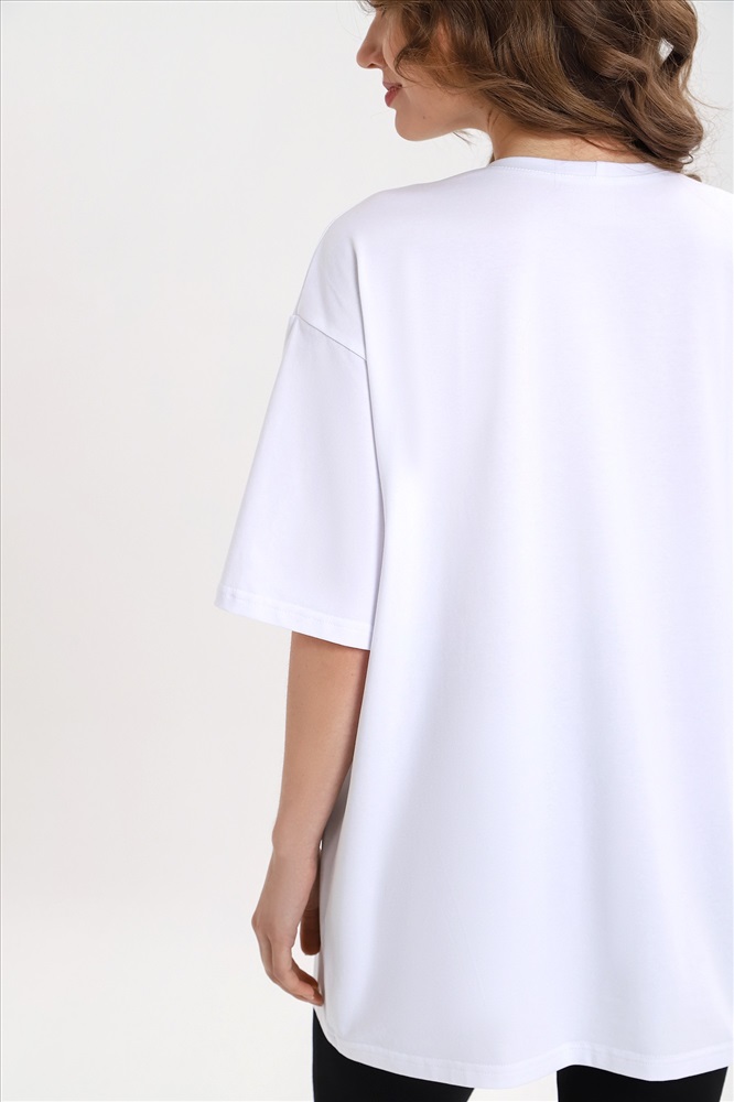 свободного покроя оверсайз, с короткими втачными рукавами, горловиной овальной