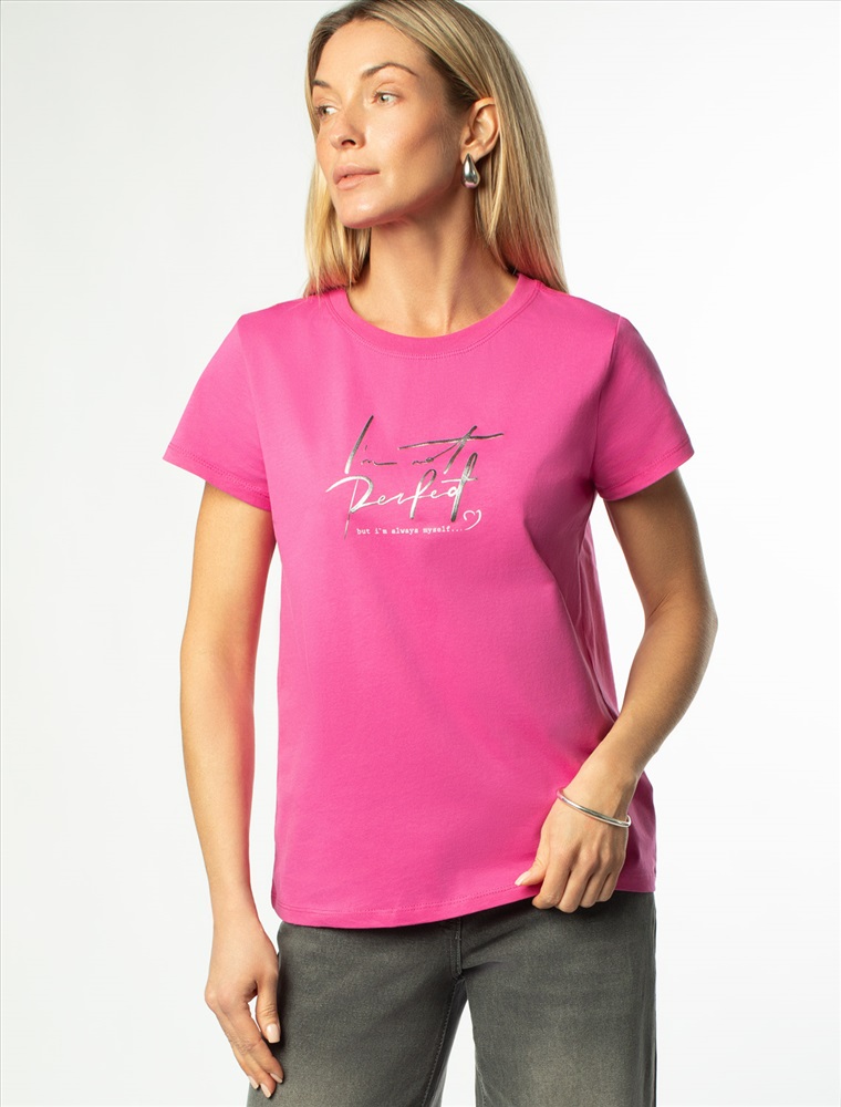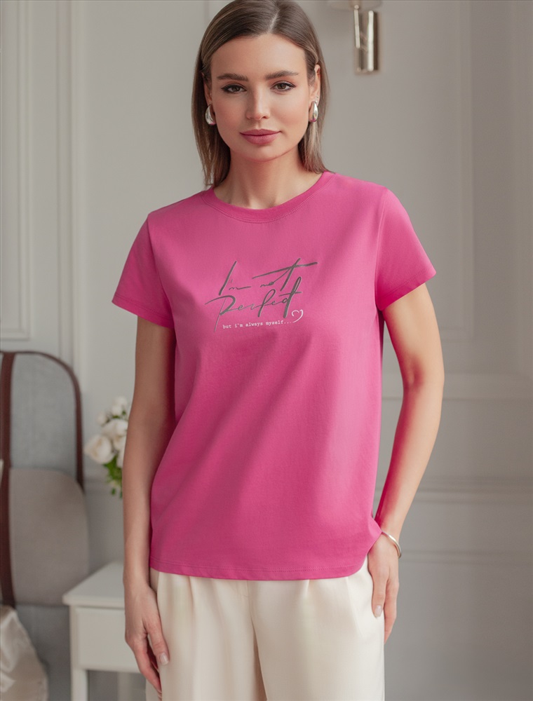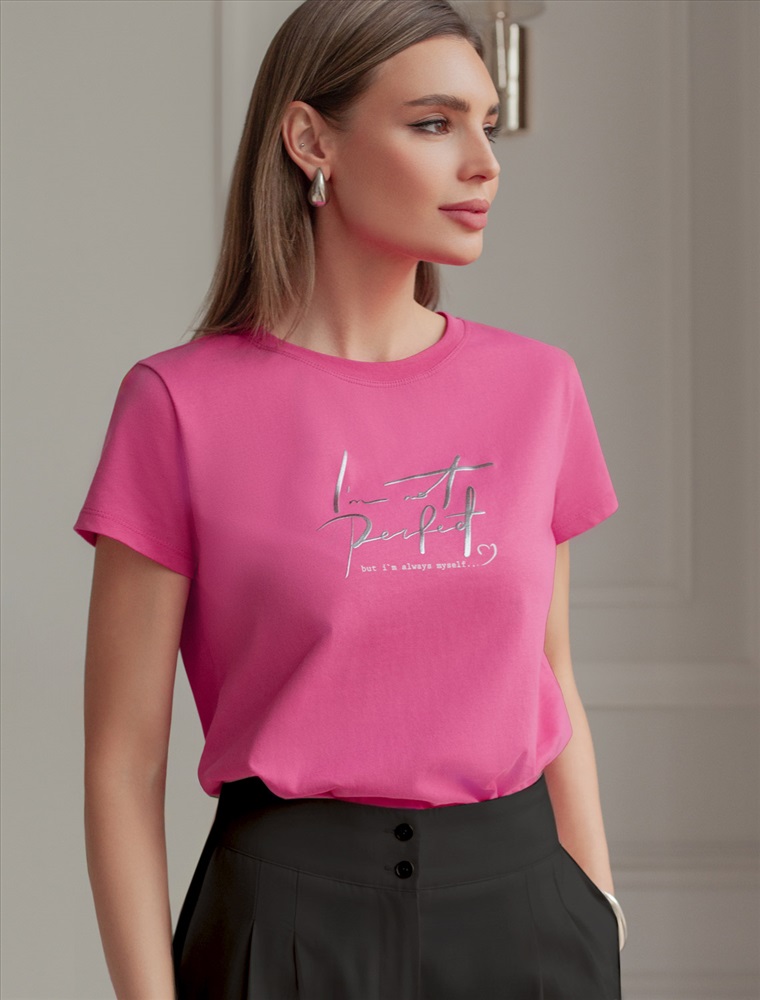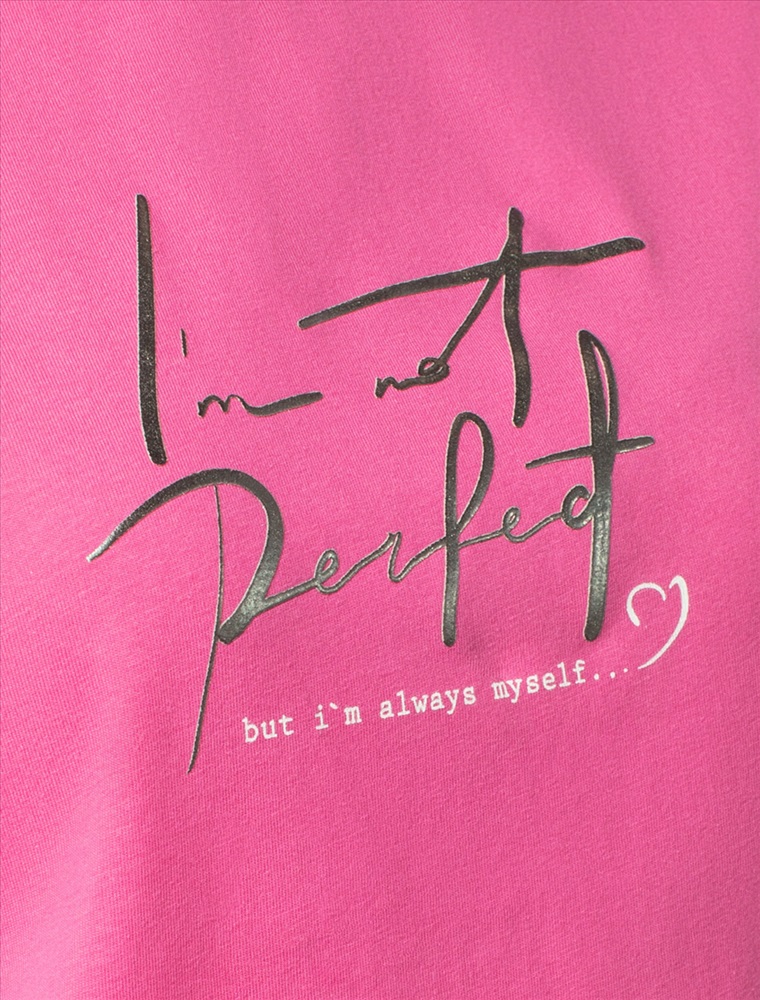 Состав: 100%Хлопок Перевод принта: "I am not perfect, but I'm always myself - я не идеальна, но я всегда настоящая". Футболка прямого кроя выполнена из 100% хлопка. Базовая модель дополнена лаконичным авторским принтом. Легко впишется в повседневный гардероб. Изделие хорошо держит форму и обеспечивает комфортный микроклимат в течение дня.