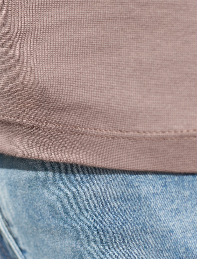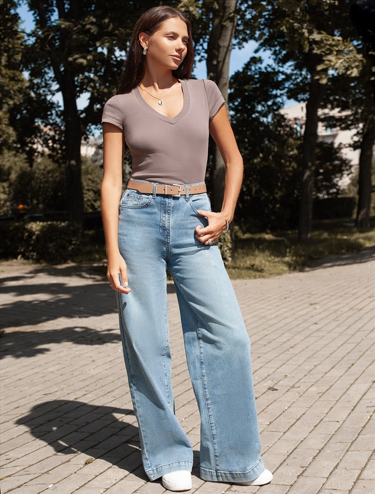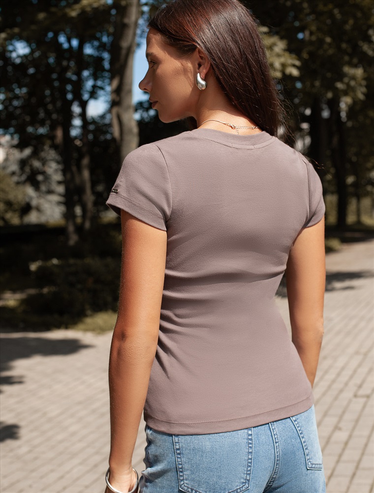 Облегающая футболка с V-образным вырезом глубокого кофейного оттенка создаст утонченный образ. Идеальная базовая модель для вашего гардероба! Глубокий V-образный вырез подчеркивает линию шеи и зрительно удлиняет силуэт. Футболка выполнена из хлопка с добавлением эластана, которая мягко облегает контуры тела, подчеркивая достоинства фигуры. Универсальный вариант для создания стильных повседневных образов.