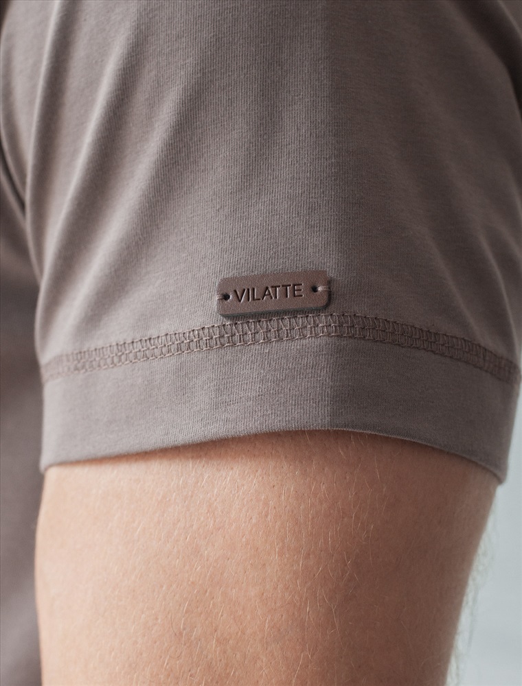 Однотонная футболка выполнена в минималистичном стиле, дополнена аккуратной вышивкой на груди в виде буквы V в тон изделия, а так нашивкой на рукаве из эко-кожи с логотипом VILATTE. Подходит как классический вариант для работы в офисе под пиджак, так и для повседневной носки или занятий спортом. Мягкая ткань приятна к телу, не вызывает дискомфорта и идеально подходит для дома или летних прогулок благодаря короткому рукаву.
