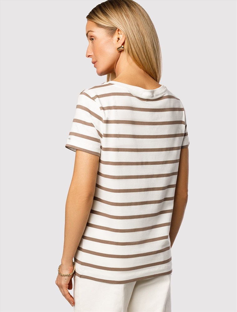 Параметры модели на первом фото: Рост 170, бюст 89, талия 63, бедра 92 Футболка с V-образным вырезом выполнена из премиального хлопка. Добавление эластана в состав изделия способствует формоустойчивости. Самое высокое качество длинноволокнистых хлопковых волокон обеспечивает комфорт в любое время года. Изделие дополнено металлическим логотипом бренда. Комментарии к товару
