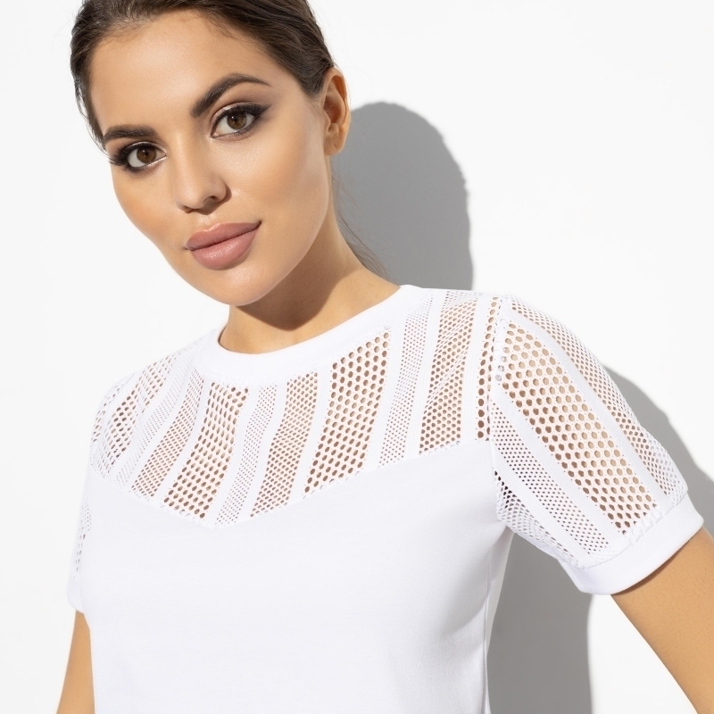 Состав: Трикотаж «милано», «гипюр стрейч» (65% п/э, 30% вискоза, 5% спандекс) Плотность ткани: Средняя Тип ткани: Трикотаж Вид застежки: Нет Карманы: Нет Основной цвет ткани: Белый Отрезная талия: Нет Подклад: Нет Резинка по талии: Нет Рисунок/раппорт: Каждое изделие уникально из-за расположения рисунка на ткани Сезон: Круглогодичный Комментарии к товару