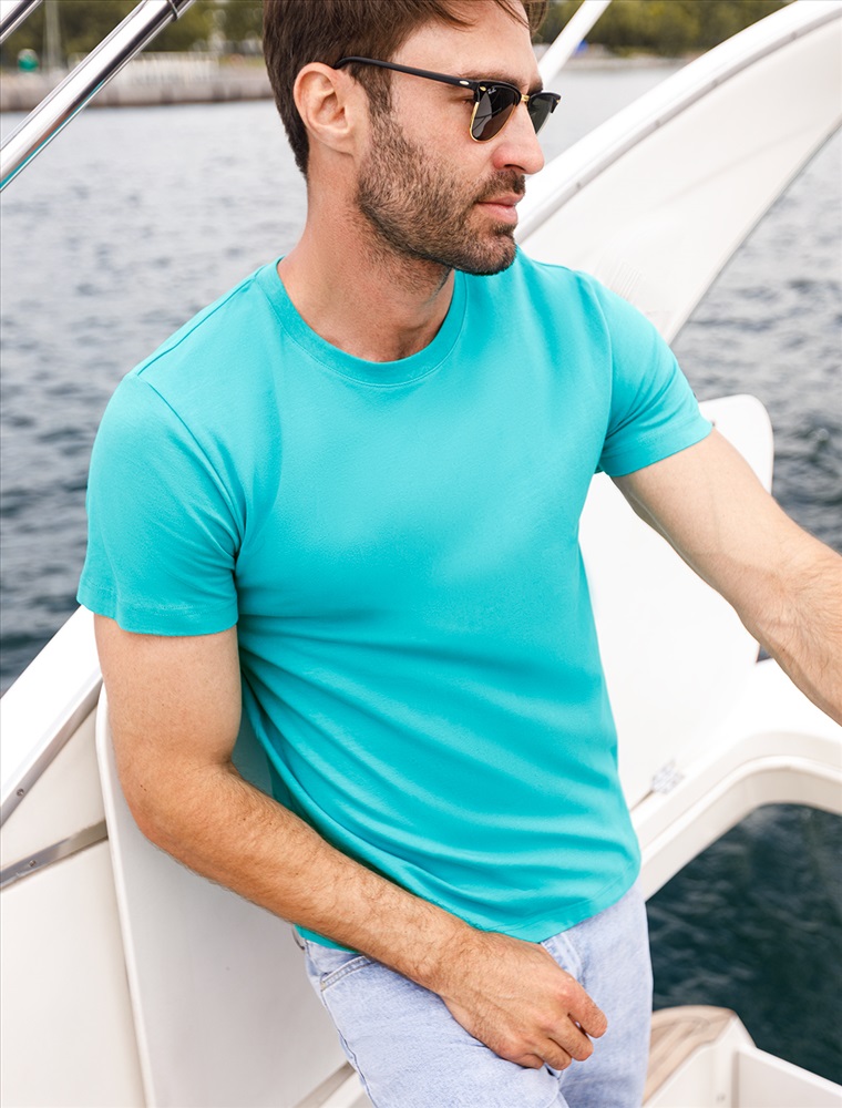 Базовая однотонная футболка из хлопка. Для пошива модели с круглой горловиной использовали мягкое хлопковое полотно с характерной эластичной структурой. Самое высокое качество хлопковых волокон с добавлением эластана. Идеально держит форму и сохраняет внешний вид в течение долговременного использования.