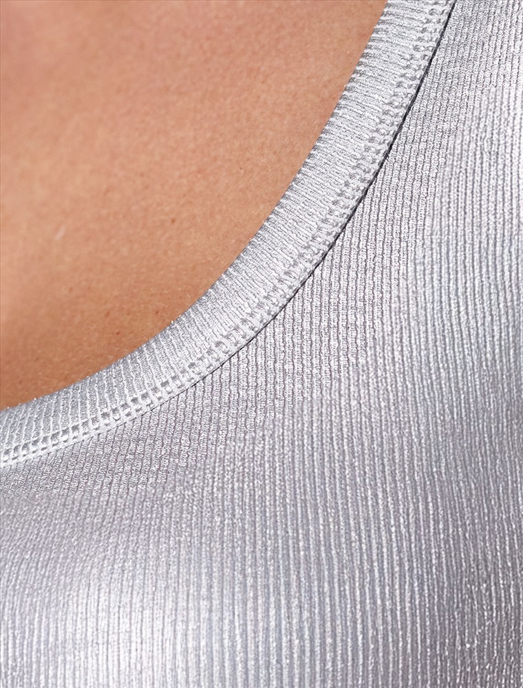 Стильная футболка серебристого цвета с U вырезом выполнена из премиального хлопка с добавлением эластана. Эффектное матовое покрытие металлик придает футболке изысканный блеск. Чуть удлиненные рукава и глубокий круглый вырез, открывающий область декольте, добавляют женственность и элегантность образу. Мелкий рубчик визуально вытягивает силуэт, за счет эластана в составе материал прекрасно тянется и садится на любую фигуру, в том числе большие размеры. Ткань износостойкая, сохраняет свой превоначальный вид даже после многочисленных стирок, отличается мягкостью и приятными тактильными ощущениями, такой материал не раздражает кожу, дарит ощущение уюта даже при длительном ношении, а воздухопроницаемость позволяет коже свободно дышать.