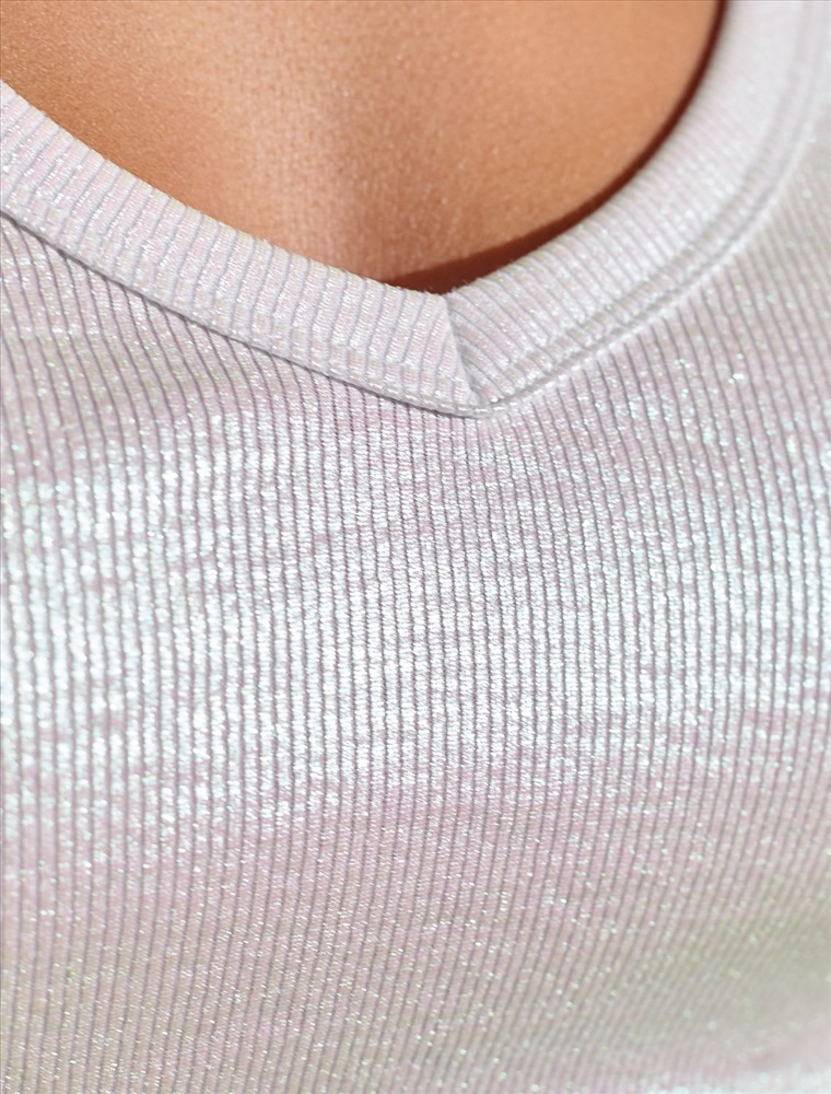 Стильная футболка перламутрового цвета с V вырезом выполнена из премиального хлопка с добавлением эластана. Эффектное матовое покрытие металлик придает футболке изысканный блеск. Чуть удлиненные рукава и глубокий вырез, открывающий область декольте, добавляют женственность и элегантность образу. Мелкий рубчик визуально вытягивает силуэт, за счет эластана в составе материал прекрасно тянется и садится на любую фигуру, в том числе большие размеры. Ткань износостойкая, сохраняет свой превоначальный вид даже после многочисленных стирок, отличается мягкостью и приятными тактильными ощущениями, такой материал не раздражает кожу, дарит ощущение уюта даже при длительном ношении, а воздухопроницаемость позволяет коже свободно дышать.