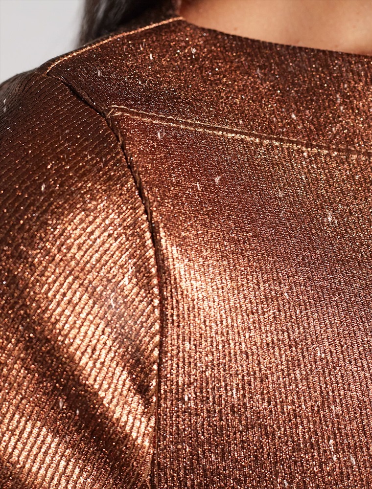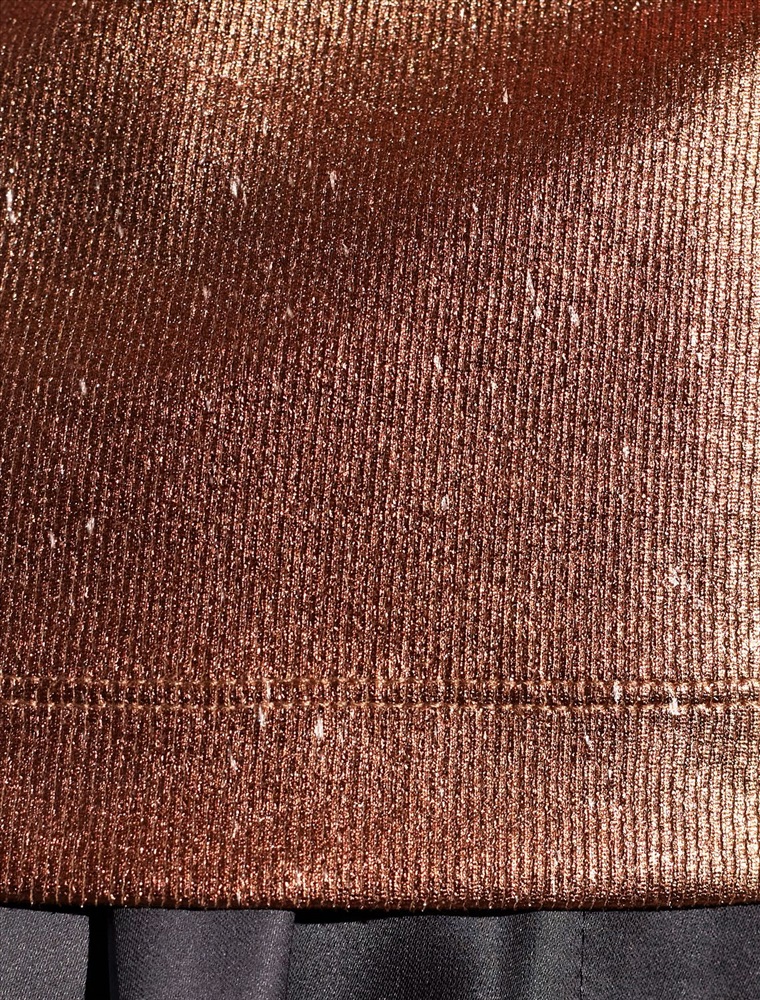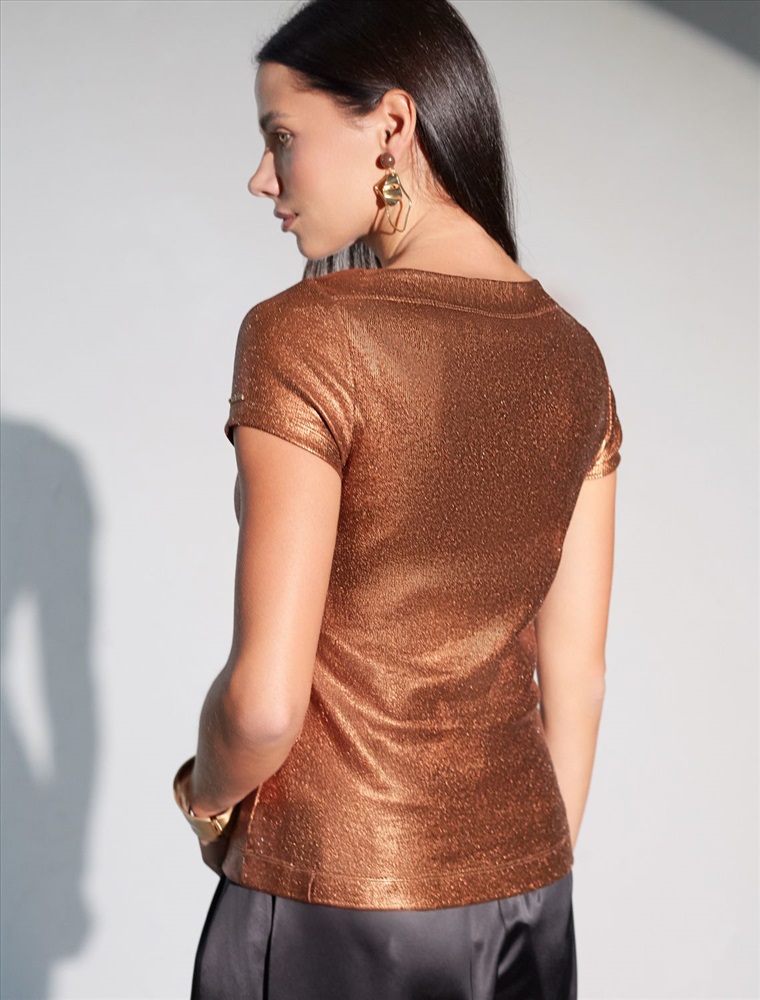 Плотность: 175 Г/м2 Стильная футболка кофейного цвета с вырезом лодочка выполнена из премиального хлопка с добавлением эластана. Эффектное матовое бронзовое покрытие металлик с серебристыми вкраплениями придает футболке изысканный блеск. Вырез лодочка добавляет элегантности и женственности образу. Мелкий рубчик визуально вытягивает силуэт, за счет эластана в составе материал прекрасно тянется и садится на любую фигуру, в том числе большие размеры. Ткань износостойкая, сохраняет свой превоначальный вид даже после многочисленных стирок, отличается мягкостью и приятными тактильными ощущениями, такой материал не раздражает кожу, дарит ощущение уюта даже при длительном ношении, а воздухопроницаемость позволяет коже свободно дышать. Повседневная футболка универсальна: она сочетается с джинсами, юбками или строгими брюками — легко создать как деловой образ для офиса, так и наряд для вечеринки или ужина вне дома. Матовое покрытие создает благородный блеск без лишней яркости, благодаря чему футболка смотрится свежо и актуально. Комментарии к товару