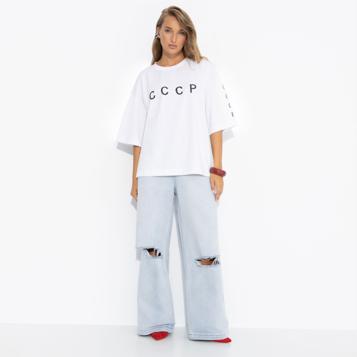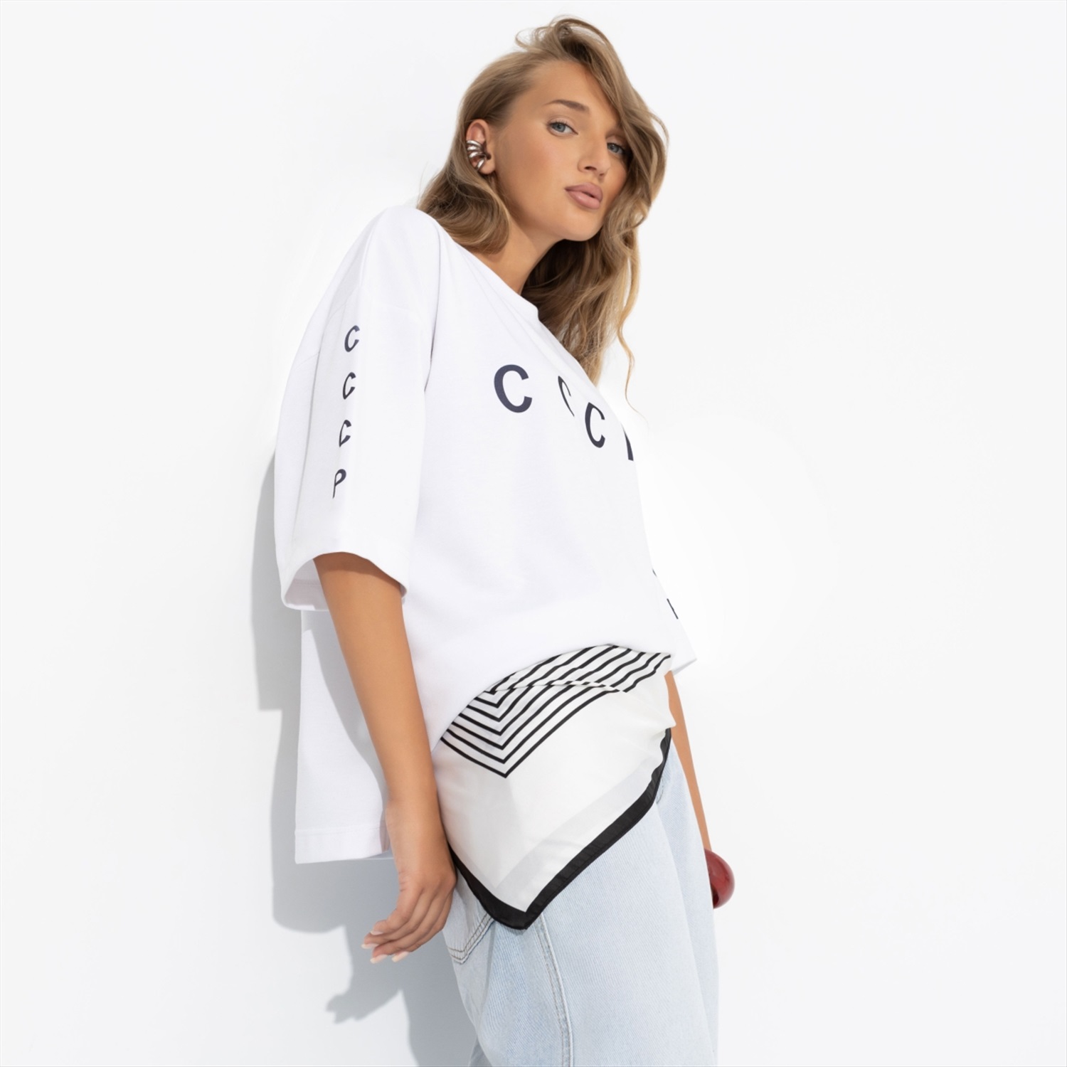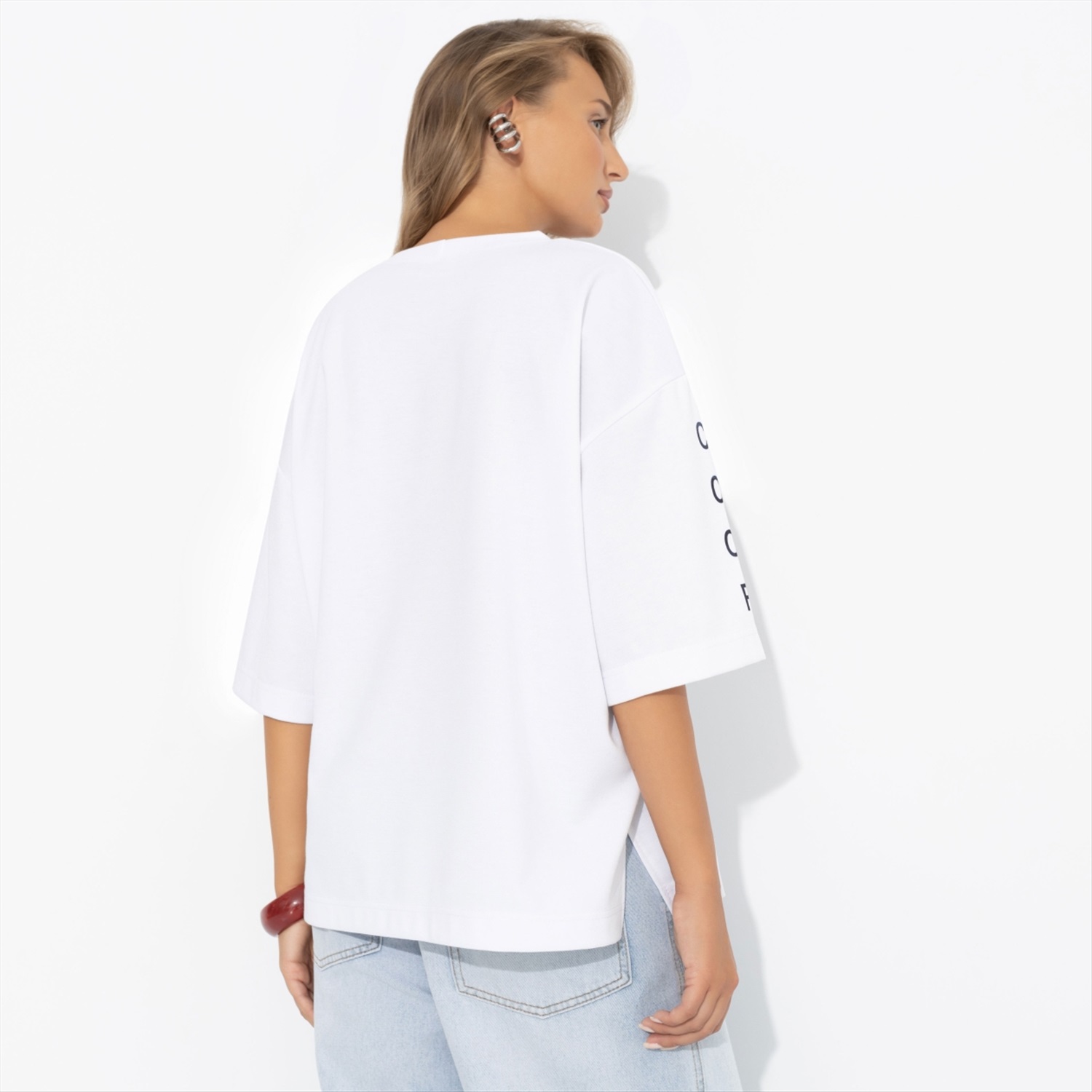 Состав: «Милано» (65% п/э, 30% вискоза, 5% стрейч) Плотность ткани: Средняя Тип ткани: Трикотаж Вид застежки: Нет Декоративные элементы: Другое Карманы: Нет Основной цвет ткани: Белый Отрезная талия: Нет Подклад: Нет Резинка по талии: Нет Рисунок/раппорт: Каждое изделие уникально из-за расположения рисунка на ткани Сезон: Круглогодичный Силуэт: Свободный Стиль: Повседневный Параметры модели на фото: