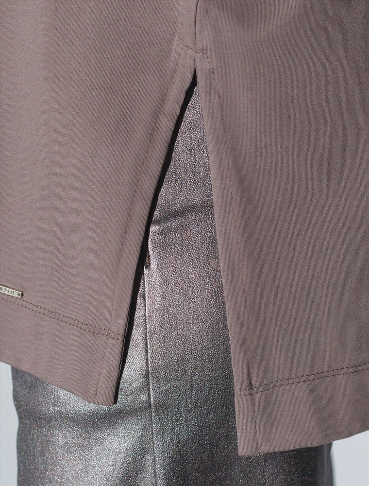 Такая эффектная длинная футболка станет универсальным дополнением гардероба, позволяя создавать разнообразные образы с акцентом на современный стиль и утонченность деталей. Благодаря стильному дизайну с боковыми разрезами эта футболка станет идеальным вариантом для создания легких и непринужденных луков.