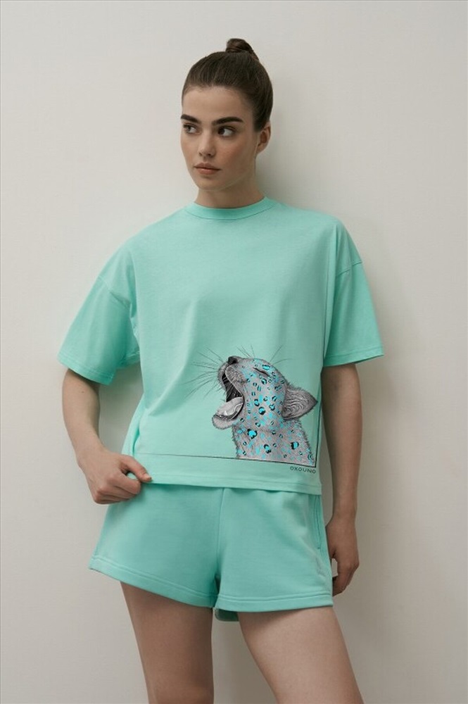 ID товара: 1093929 Состав: Хлопок 100% Сезон: Весна/Лето Длина: Укороченная Фасон: Свободный крой Рукав: короткие Вырез горловины: Округлый Рисунок: Фантазийный Основная ткань: Хлопок Стиль: Повседневный Страна бренда: Россия Страна производства: Россия Укороченная футболка. Втачной рукав. Комментарии к товару