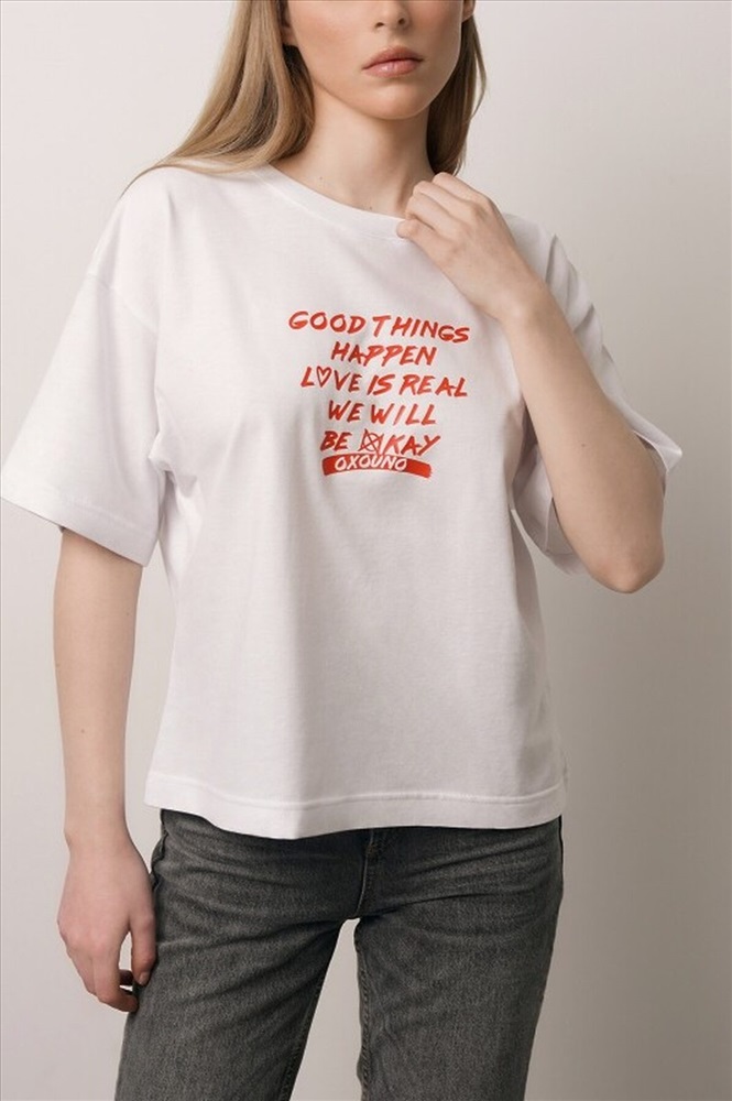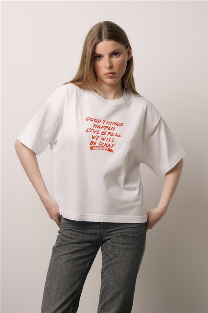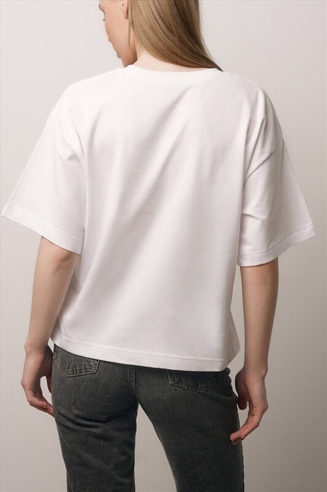 ID товара: 1129423 Состав: Хлопок 100% Сезон: Весна/Лето Длина: Укороченная Фасон: Свободный крой Рукав: короткие Вырез горловины: Округлый Рисунок: Надпись Декоративные элементы: Принт Основная ткань: Хлопок Стиль: повседневный Страна бренда: Россия Страна производства: Россия Укороченная футболка, спущенное плечо. Укрепление плечевых швов и шва горловины бейкой из основной ткани. Горловина из рибаны. Комментарии к товару
