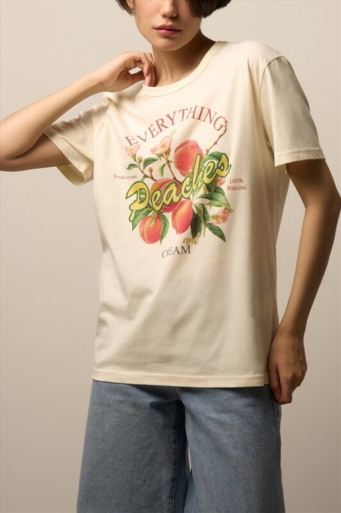 ID товара: 1129429 Состав: Хлопок 100% Сезон: Демисезон Длина: Средняя Фасон: Прямой Рукав: Короткие Вырез горловины: Округлый Рисунок: Фрукты Декоративные элементы: Принт Основная ткань: Хлопок Стиль: повседневный Страна бренда: Россия Страна производства: Россия Boyfriend крой, втачной рукав, горловина окантована рибаной Комментарии к товару