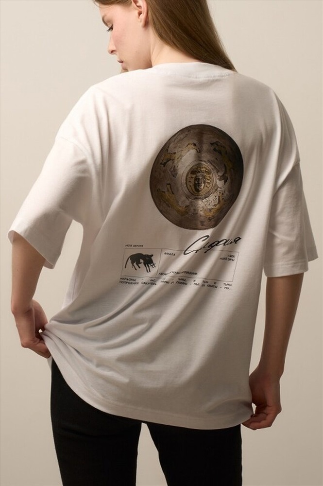 Производитель: OXOUNO ID товара: 1129440 Состав: Хлопок 100% Сезон: Демисезон Длина: Средняя Фасон: Свободный крой Рукав: Короткие Вырез горловины: Округлый Рисунок: Надпись Декоративные элементы: Принт Основная ткань: Хлопок Стиль: повседневный Страна бренда: Россия Страна производства: Россия