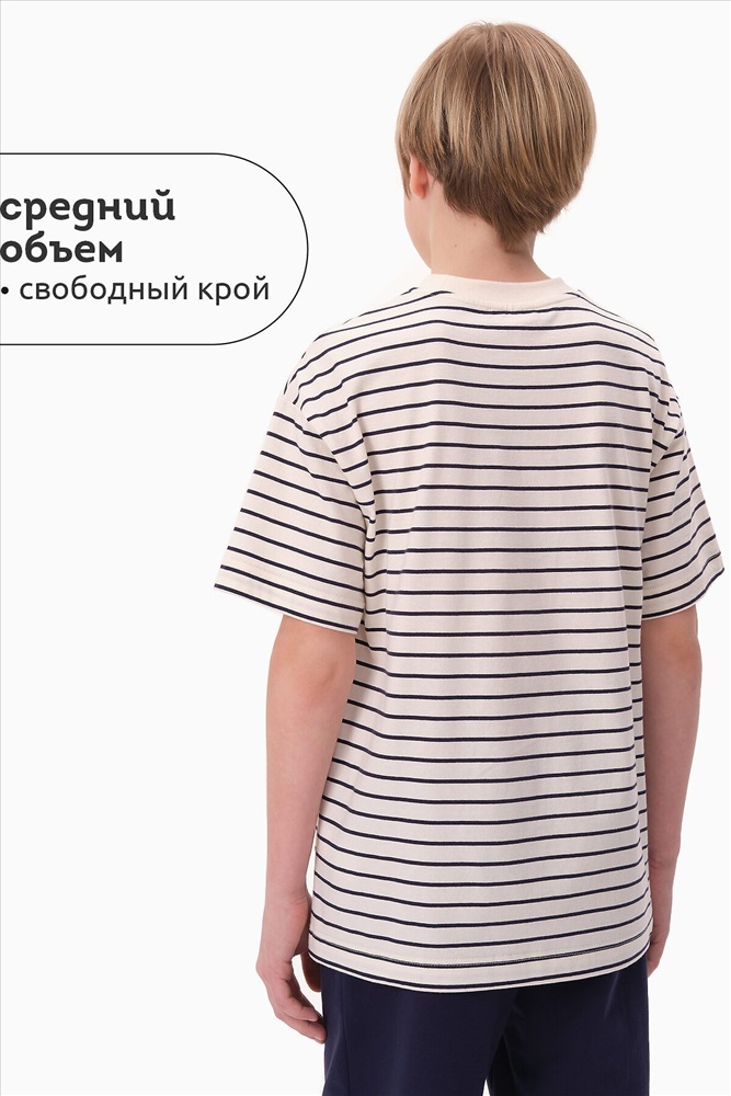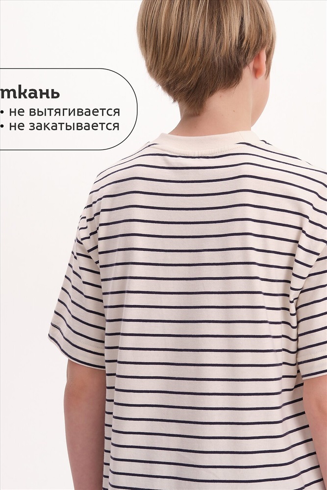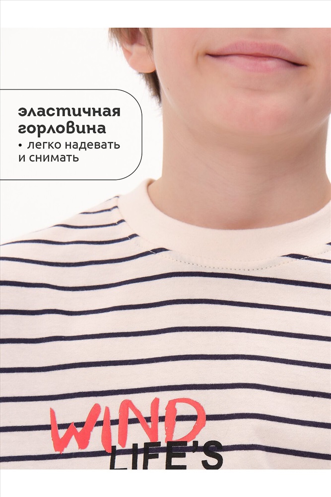 ID товара: 1104429 Состав: 100%х Хлопок Сезон: Демисезон Длина: Средняя Фасон: Свободный Рукав: короткие Вырез горловины: Округлый Рисунок: Полоска Декоративные элементы: Принт Основная ткань: Хлопок Стиль: повседневный Страна бренда: Россия Страна производства: Китай Футболка для мальчика свободного кроя - это идеальный выбор для активного ребенка. Вырез горловины обработан эластичной тканью — она прекрасно держит форму, не растягивается, при этом ребёнку удобно надевать и снимать футболку.По переду принт с надписями. Перевод принта "wind, ships, sea, gulls" - ветер, корабли, море, чайки, "life's a wave catch it" - жизнь это волна, ловите ее. Спортивная футболка подходит как для малышей в детский сад так и для подростков. Она подходит для любого времени года, её можно носить как летом, так и в холодное время года в качестве среднего слоя одежды. Помните о правильном уходе за изделием: рекомендуется стирать при температуре не выше 30 °C, без предварительного замачивания, с изнанки. Это поможет сохранить качество и цвет футболки на длительное время. Комментарии к товару