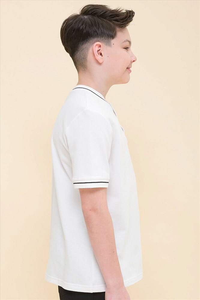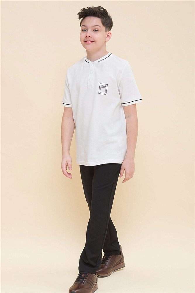 ID товара: 886188 Состав: 100% Хлопок Сезон: Весна/Лето Длина: Средняя Фасон: Прямой Рукав: Короткие Вид застежки: Кнопки Вырез горловины: Округлый Основная ткань: Хлопок Стиль: Повседневный Страна бренда: Россия Страна производства: Китай " Описание: Футболка-хенли из 100% хлопка для мальчика. Благодаря натуральному составу ткани изделие мягкое, воздухопроницаемое и очень комфортное. Горловина и рукава отделаны декоративной рибаной, которая долго сохраняет форму, устойчива к частым стиркам. Застёжка под горловиной на три кнопки — джемпер удобно надевать и снимать. На груди модель украшает лаконичный силиконовый принт, устойчивый к многочисленным стиркам. Отличный вариант одежды для школы. Состав: 100%хлопок" Комментарии к товару