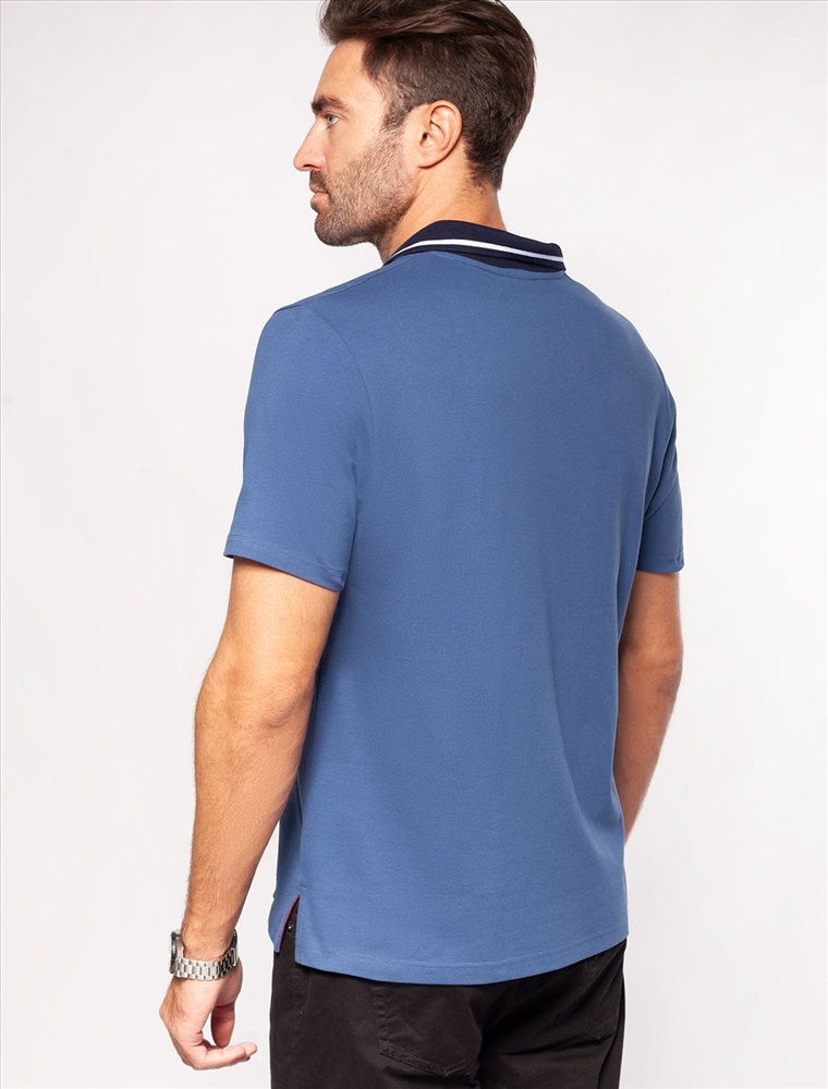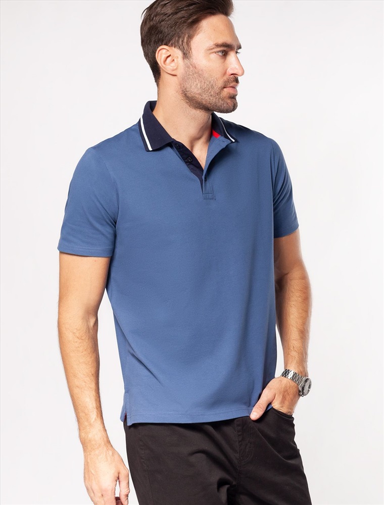 Параметры модели на первом фото: Рост 190, бюст 108, талия 87, бедра 104 Светло-синее прямое поло выполнено из премиального хлопка пике с характерной фактурой, которая обеспечивает эффективную циркуляцию воздуха. Деликатный акцент в модели выполнен в виде контрастного отложного воротника. Наличие эластана в составе изделия способствует эластичности и меньшей сминаемости. Внизу металлический логотип бренда. Комментарии к товару