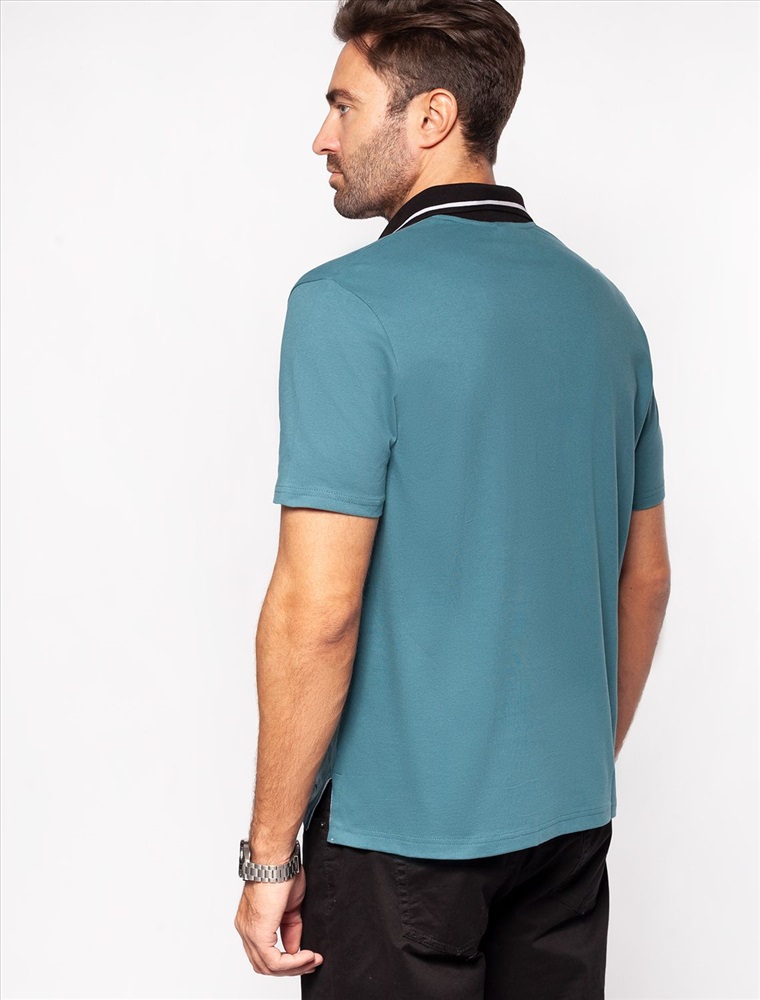 Параметры модели на первом фото: Рост 190, бюст 108, талия 87, бедра 104 Прямое поло выполнено в оттенке полынь из премиального хлопка пике с характерной фактурой, которая обеспечивает эффективную циркуляцию воздуха. Деликатный акцент в модели выполнен в виде контрастного отложного воротника. Наличие эластана в составе изделия способствует эластичности и меньшей сминаемости. Внизу металлический логотип бренда. Комментарии к товару