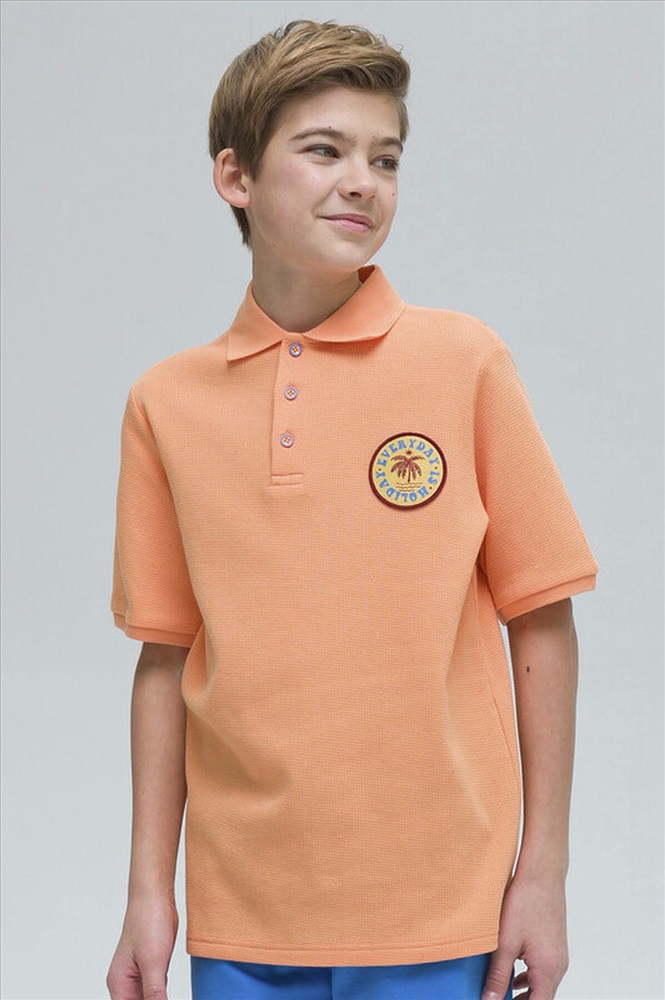 ID товара: 854861 Состав: 100% Хлопок Сезон: Весна/Лето Длина: Средняя Фасон: Прямой Рукав: Короткий Вид застежки: Пуговицы Вырез горловины: Отложной воротник Рисунок: Фантазийный Декоративные элементы: Нашивка Основная ткань: Хлопок Страна бренда: Россия Страна производства: Китай Футболка-поло из 100% хлопка для мальчика. Модель выполнена из трикотажного полотна актуальной ""вафельной"" фактуры. Такая ткань неприхотлива в уходе, а также она мягкая и очень приятная на ощупь. Благодаря этому ваш ребёнок будет чувствовать себя комфортно. У горловины планка с пуговицами — изделие удобно надевать и снимать. Поло среднего объёма можно сочетать как с шортами, так и с брюками. С такой футболкой легко создать стильный образ для мальчика. Изюминка модели — жаккардовая нашивка с принтом. Комментарии к товару