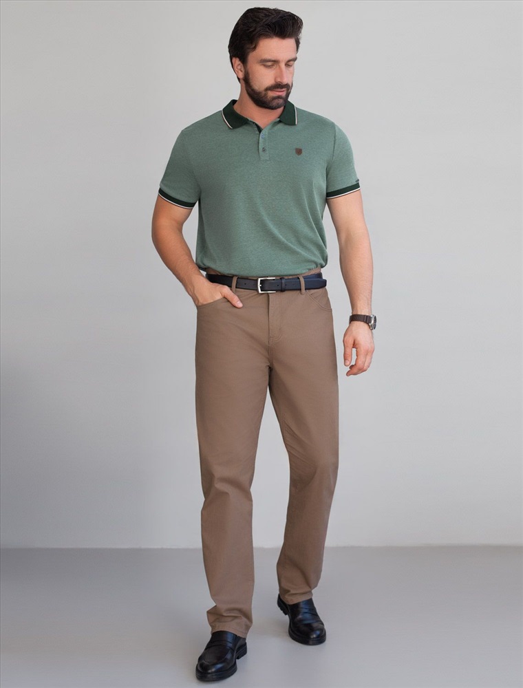 Стильная футболка поло с отложным воротником на пуговицах цвета хаки выполнена из полотна пике из двух оттенков нити, создающем эффект меланж. Мягкая и дышащая ткань обеспечивает комфорт в течение всего дня, позволяя коже дышать и поддерживать оптимальную воздухопроницаемость. Классический крой поло подойдет на разные комплекции фигуры, в том числе большие размеры, включая 58. Материал тянется, обеспечивает долговечность и сохраняет презентабельный внешний вид даже после многократных стирок.