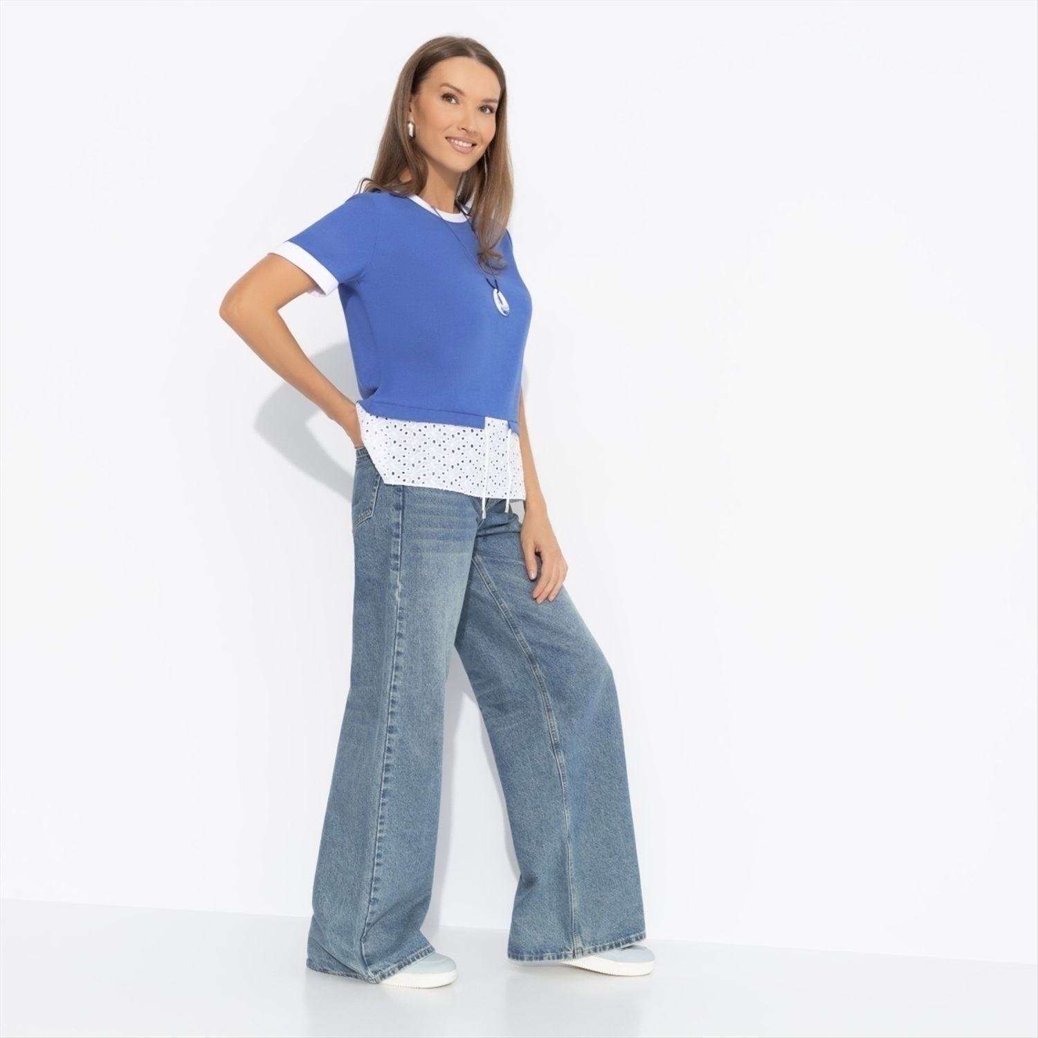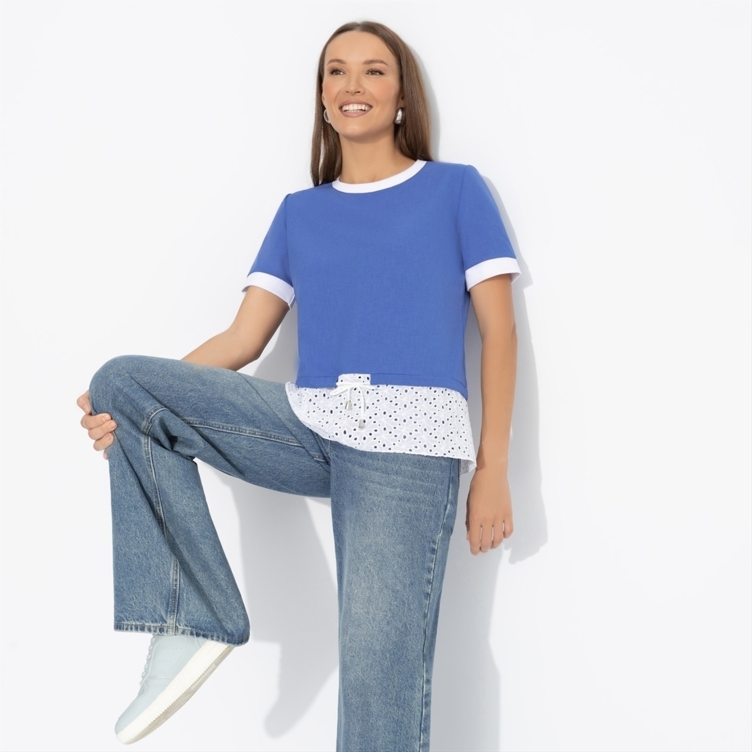 Состав: Лён «тайвань», хлопок шитьё (80% п/э, 15% лен, 5% эластан) Плотность ткани: Средняя Тип ткани: Текстиль Вид застежки: Нет Декоративные элементы: Завязки Дополнительный цвет ткани: Белый Карманы: Нет Основной цвет ткани: Синий Отрезная талия: Есть Подклад: Нет Резинка по талии: Нет Рисунок/раппорт: Нет, все изделия идентичны Сезон: Круглогодичный Силуэт: Прямой Стиль: Повседневный Параметры модели на фото: