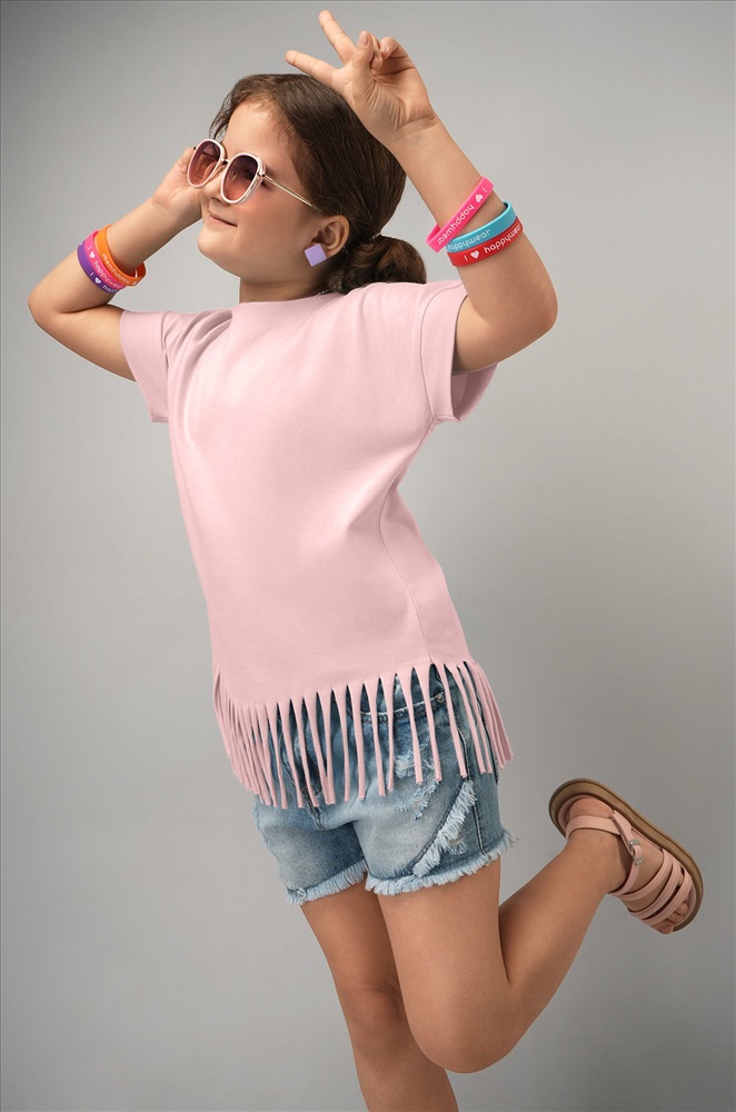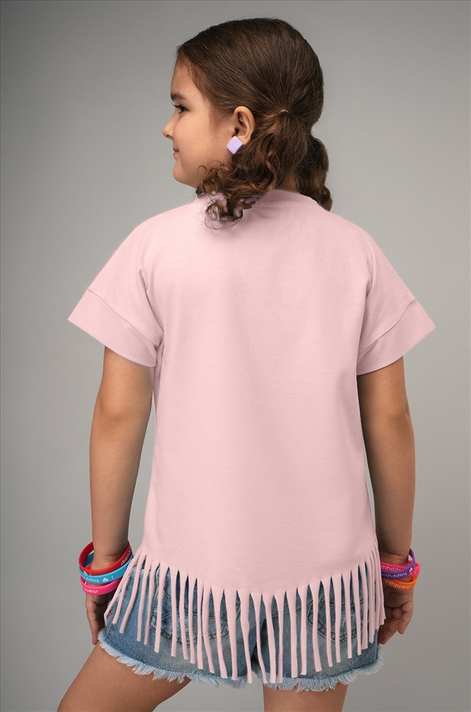 Детская футболка с оригинальной бахромой по низу — отличный выбор на каждый день. Хлопковая футболка для девочки и девочки подростка сочетает комфорт, стиль и практичность.