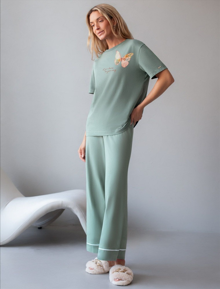 Особое внимание привлекает стильный принт в виде бабочки с минималистичной надписью. Перевод надписи: Let your dreams be your wings - Пусть твои мечты станут твоими крыльями. Принт выполнен красками с устойчивым покрытием, который добавляет изделию оригинальности и позволяет выразить индивидуальность.