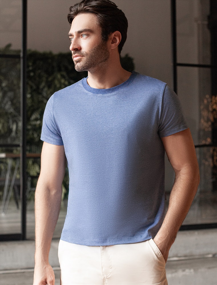 Футболка силуэта slim fit выполнена из премиального хлопка. Мягкая хлопковая ткань приятно ощущается на коже и хорошо пропускает воздух. Ткань содержит эластан, за счет чего тянется и хорошо сидит по фигуре. Не теряет форму после многократных стирок и сохраняет форму в течении долгого времени. Базовая модель дополнена сбоку вшитым логотипом бренда из эко-кожи.