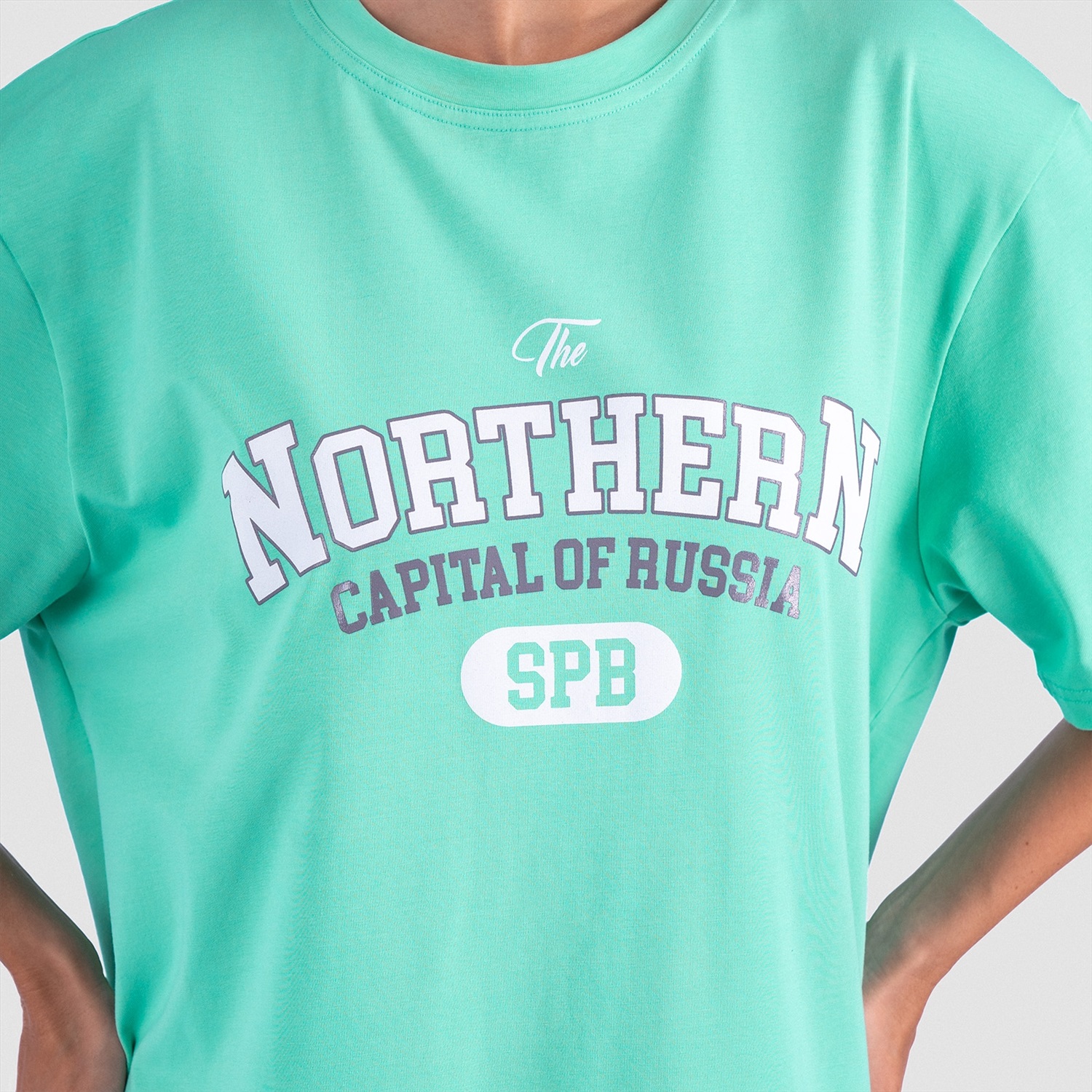 Женская футболка свободного кроя, круглый вырез горловины (принт "Northern").Материал: