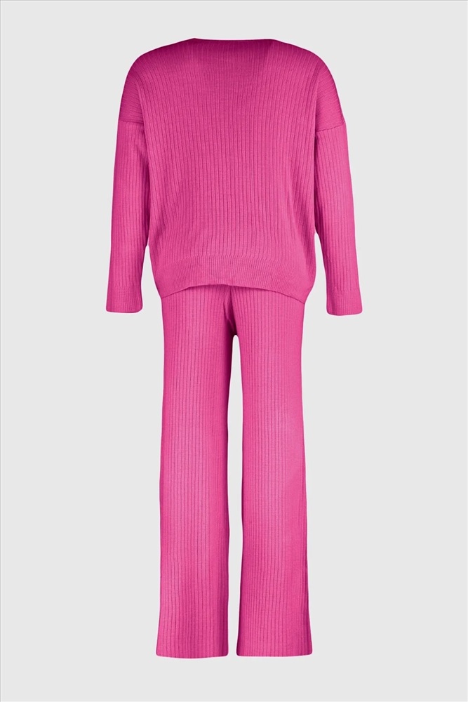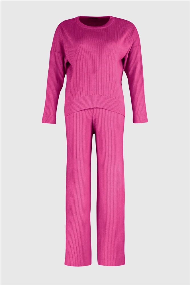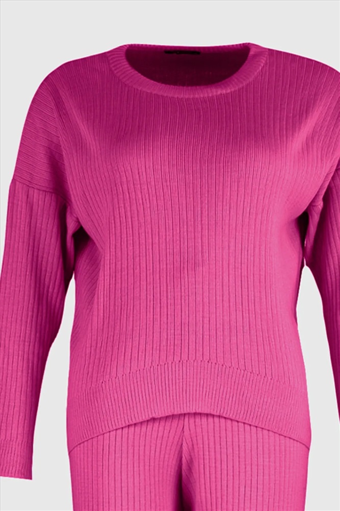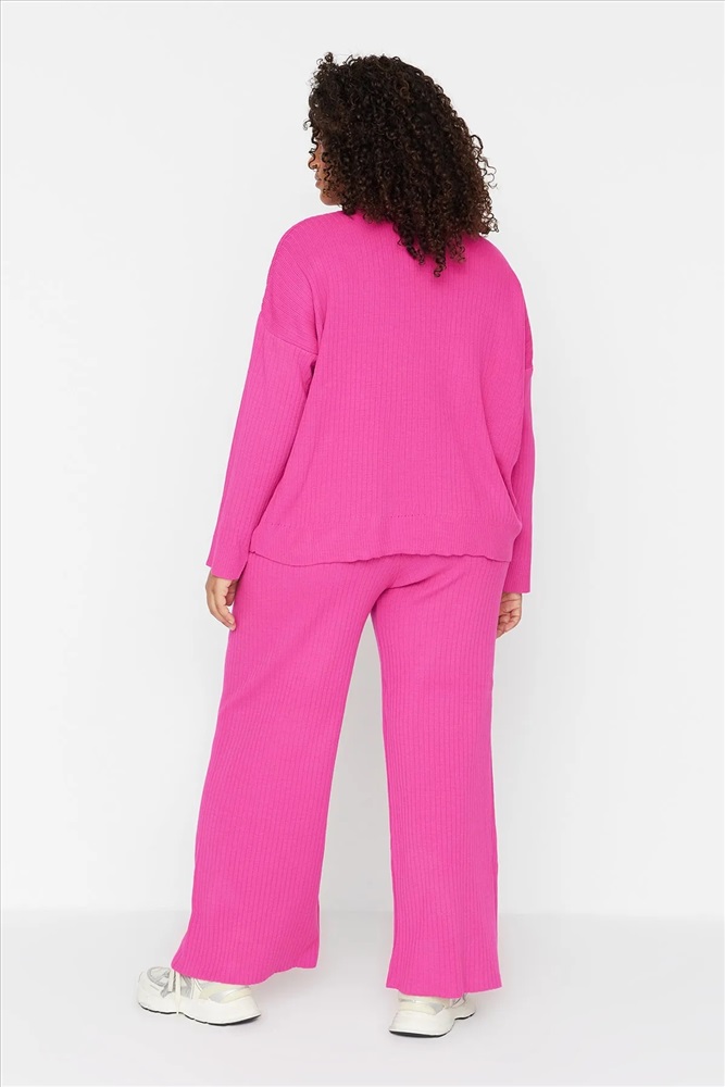 Fuşya Fitilli Bisiklet Yaka Triko Kazak Pantolon Takım TBBAW23CP00044