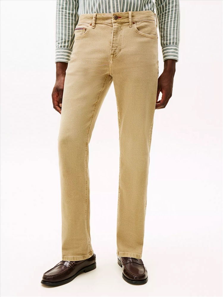 Tommy Hilfiger men's jean. Cut in our fan-favorite straight fit with a hint of stretch, these jeans are your go-to pair for the season. Made from garment-dyed denim for extra softness and retro appeal, they feel comfortable and look good on you.