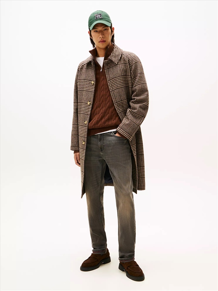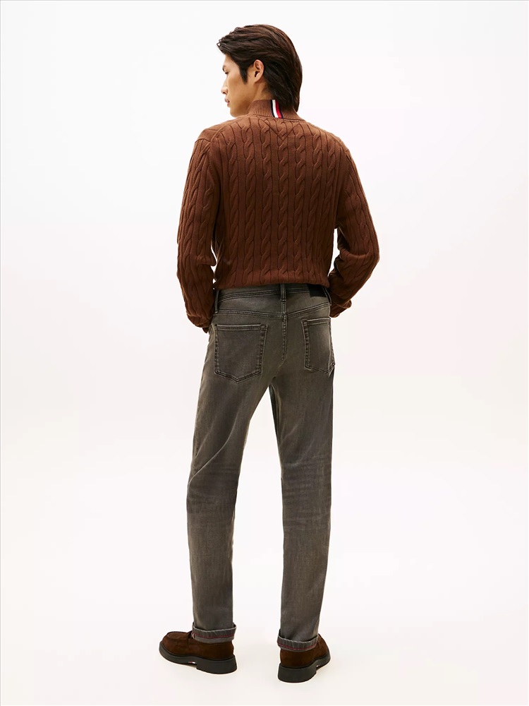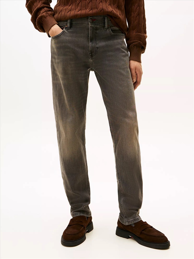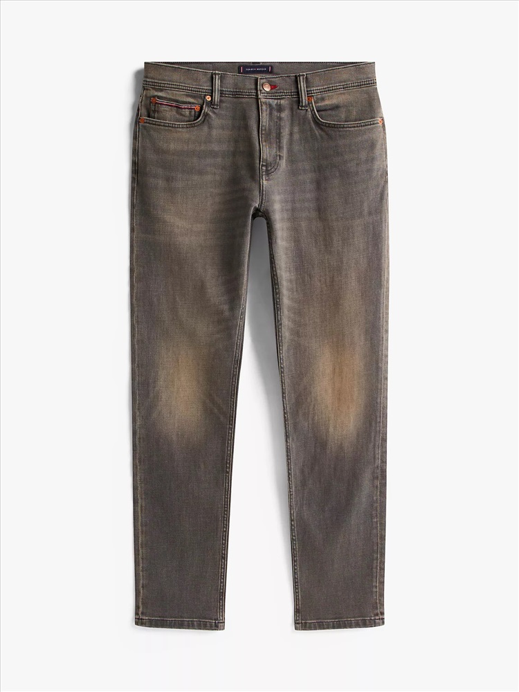 Tommy Hilfiger men's jean. Made from a recycled cotton blend with added stretch for movement, these slim-fit jeans are garment washed for extra softness and retro appeal.
