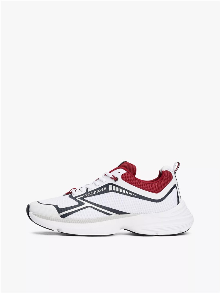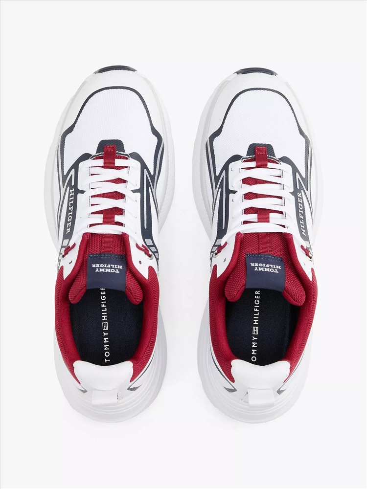 Tommy Hilfiger men's sneaker. Inspired by the archive and designed for now, these sneakers feature contrasting textures and geometric details.