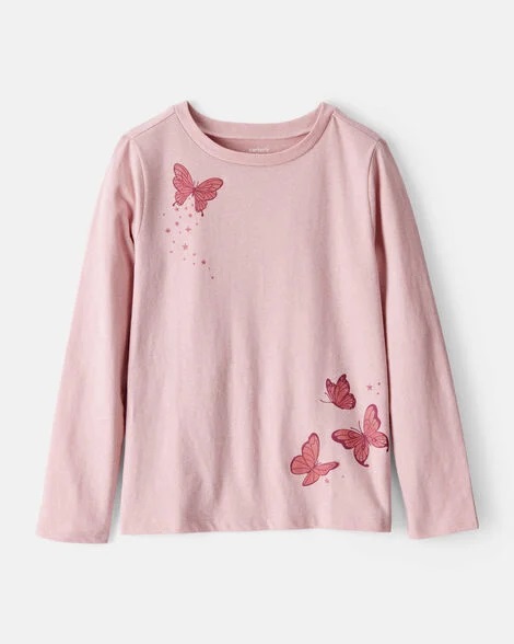 Girls Strawberry Happy Vibes Long-Sleeve Graphic Tee - Pink