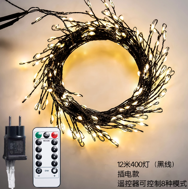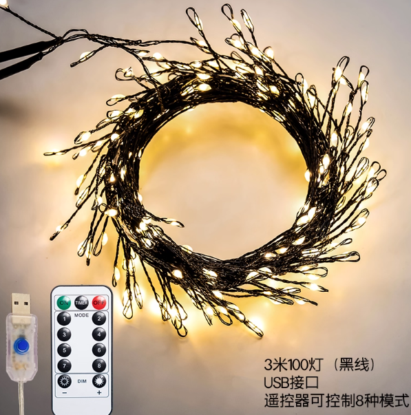 Размер: 3 м (100 ламп) - USB, 6 м (200 ламп) - USB, 12 м (400 ламп) - вилка, 18 м (600 ламп) - вилка, 24 м (800 ламп) - вилка, 30 м (1000 ламп) - вилка, 36 м (1200 ламп) - вилка, 42 м (1400 ламп) - вилка, 48 м (1600 ламп) - вилка, 54 м (1800 ламп) - - вилка, 60 м (2000 ламп) - вилка