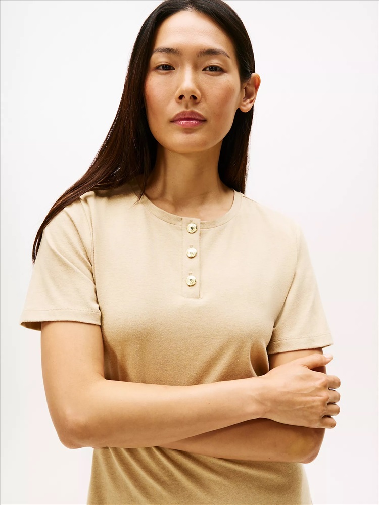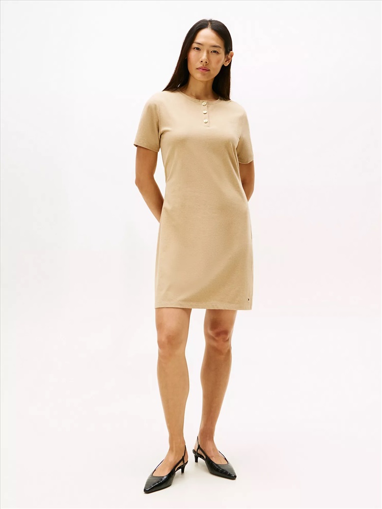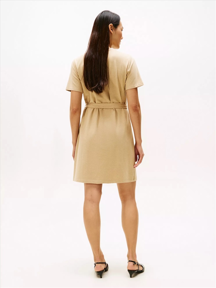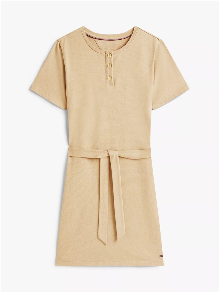 Tommy Hilfiger women's dress. Made from soft, stretch cotton, our short-sleeve dress is the ideal choice for warmer days of the season. Even better, this classic design has an elevated feel, thanks to the gold-tone button detailing and a figure-flattering self-belt.
