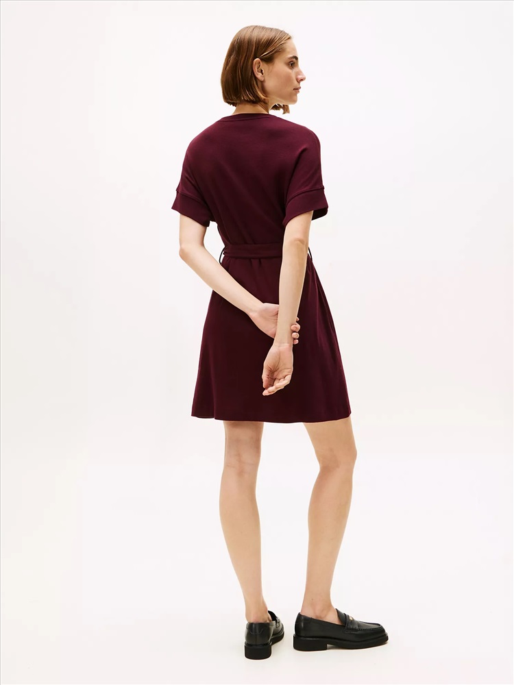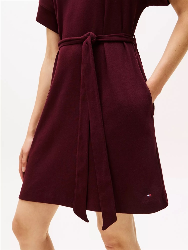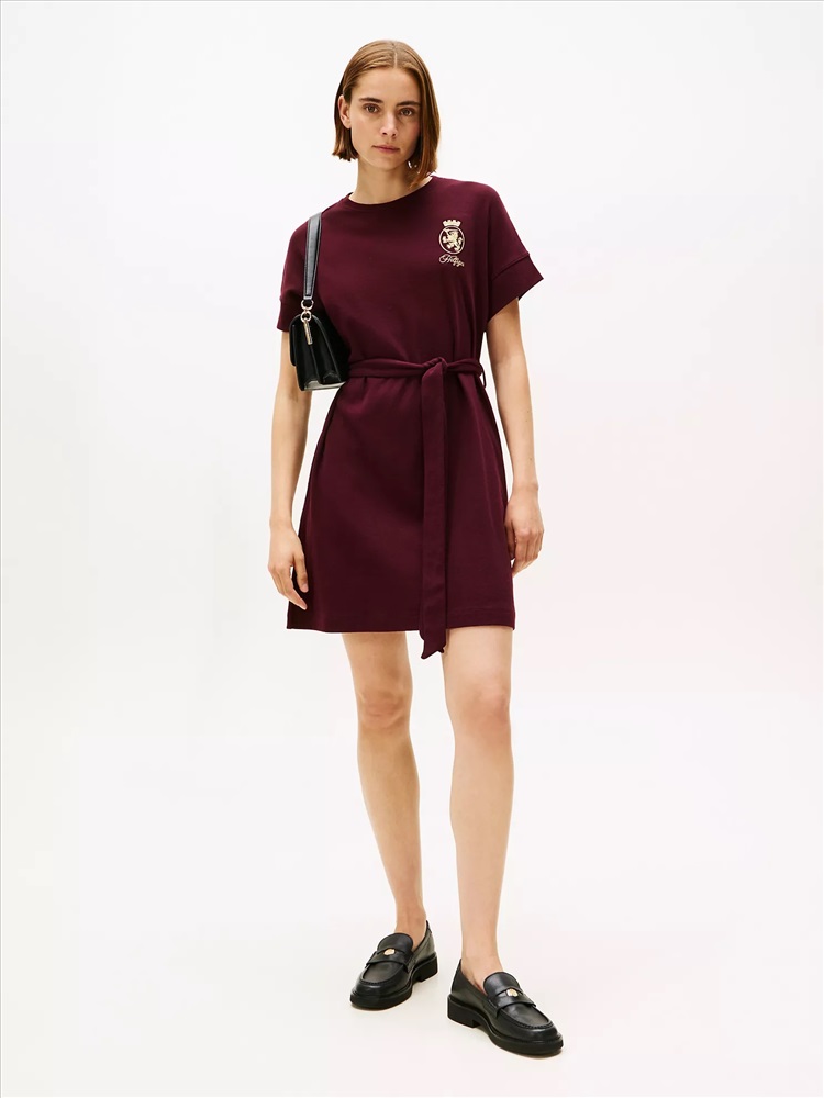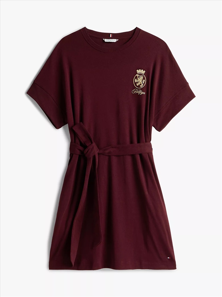 Tommy Hilfiger women's dress. Cut with a relaxed shape, this T-shirt dress is topped with an adjustable sash belt to personalize the fit. This laid-back layer is elevated with our crest logo, embroidered using metallic gold thread for a bit of shine.