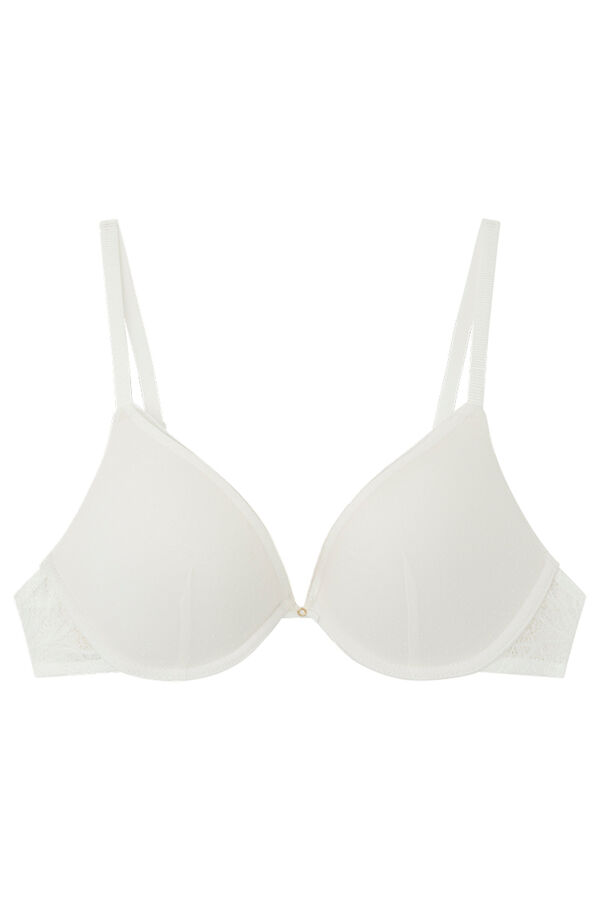 - Sujetador push up con aros. - Con tul flocado y encaje. - Color blanco. - También disponible en Copa A.