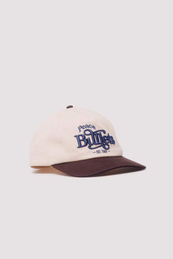 Gorra tipo camionero con bordado en el frontal. Color beige y marrón. Cierre regulable.