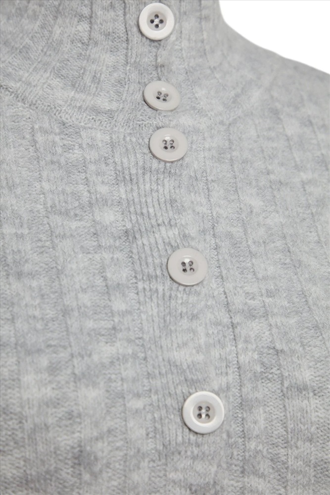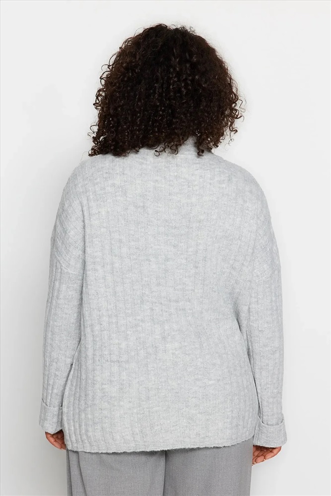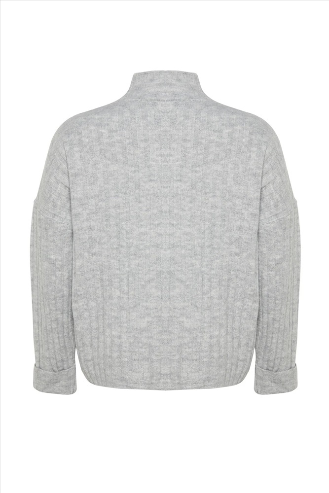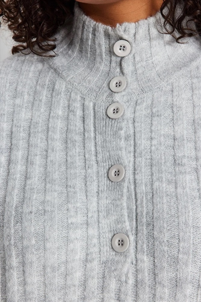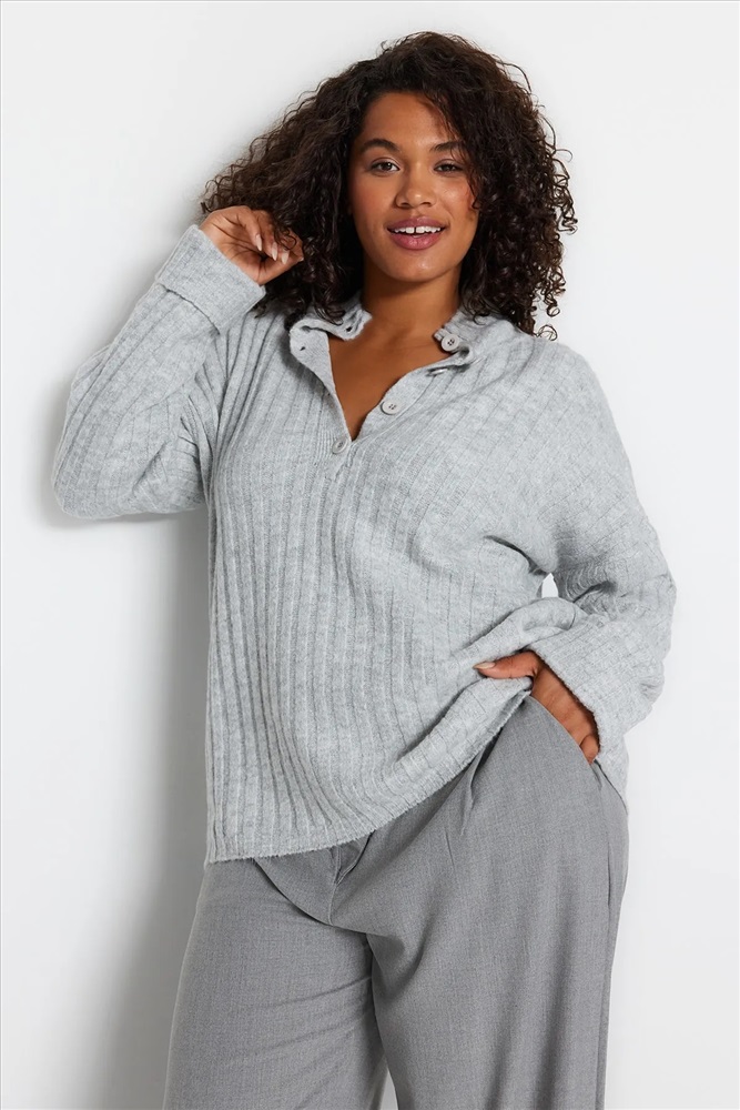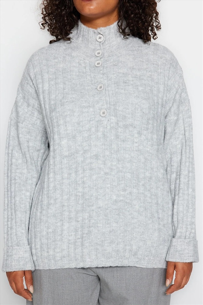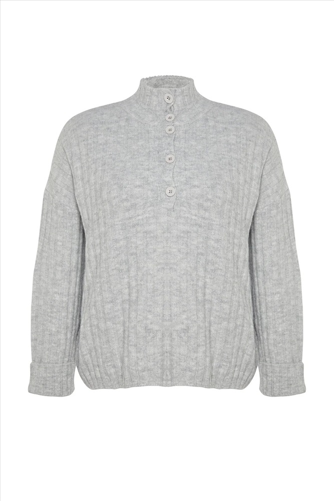 Gri Fitilli Düğmeli Triko Kazak TBBAW24AN00045