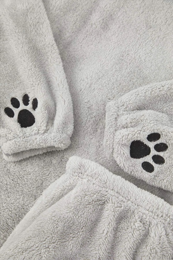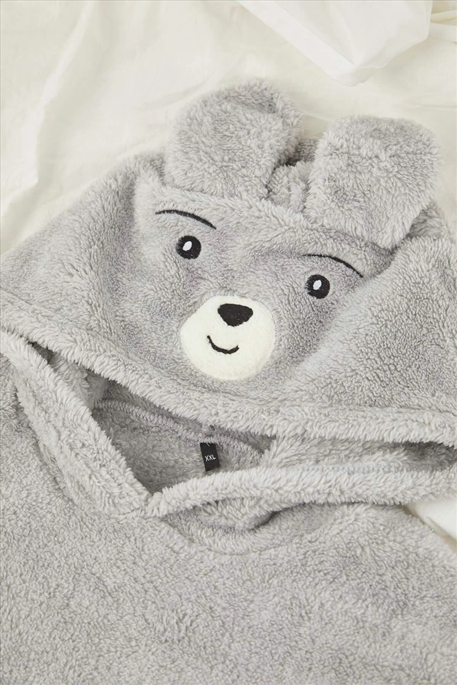Gri Kapüşonlu ve Nakışlı Wellsoft Kışlık Örme Pijama Takımı TBBAW26AI00008