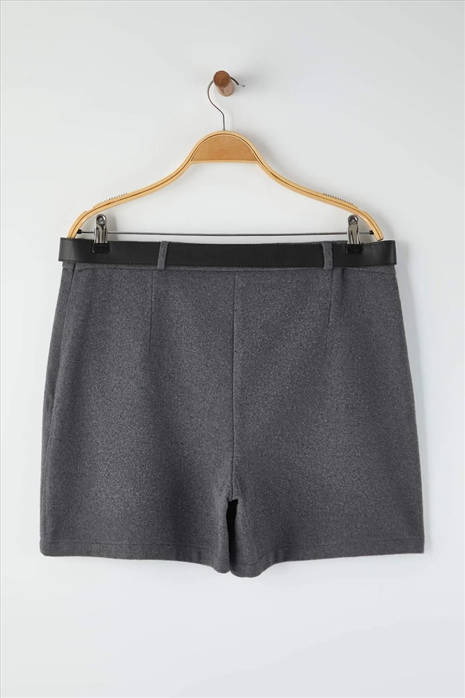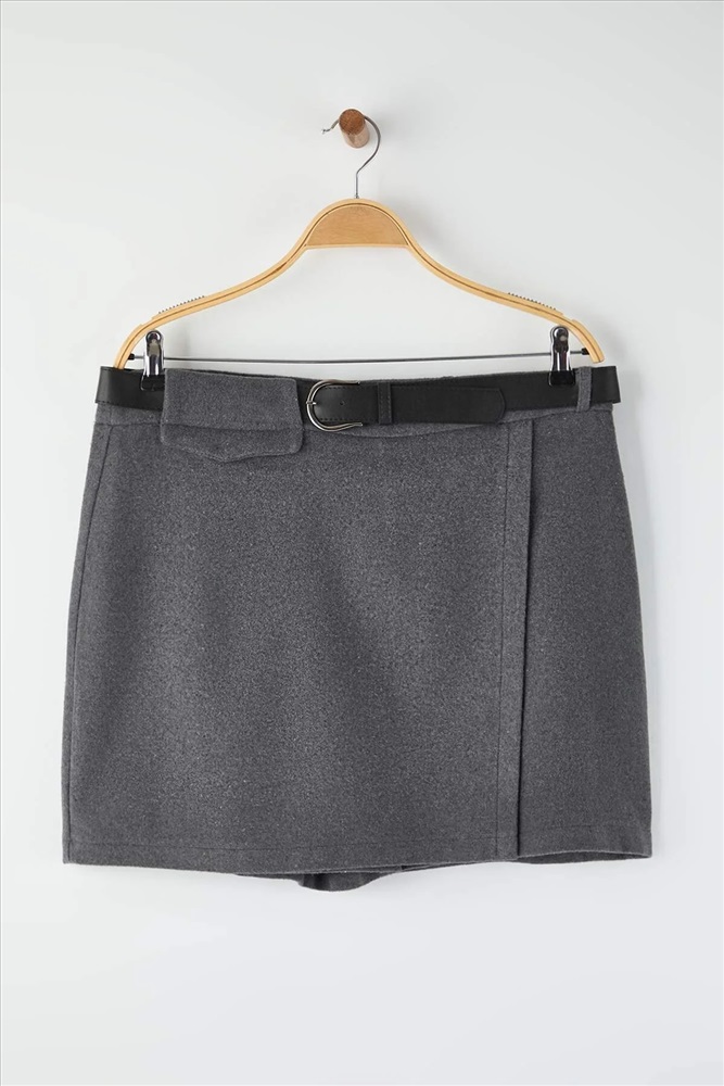 Gri Kemerli Kaşe Kışlık Mini Dokuma Şort Etek TBBAW26AP00001