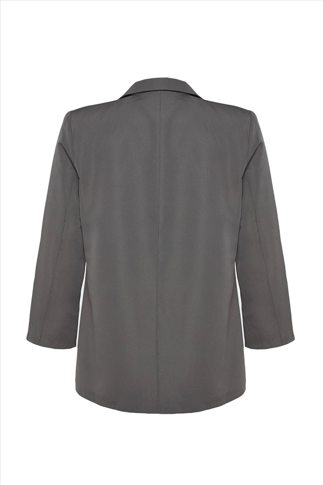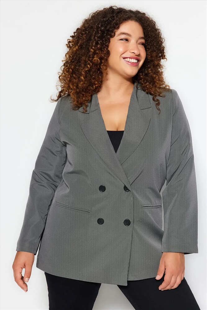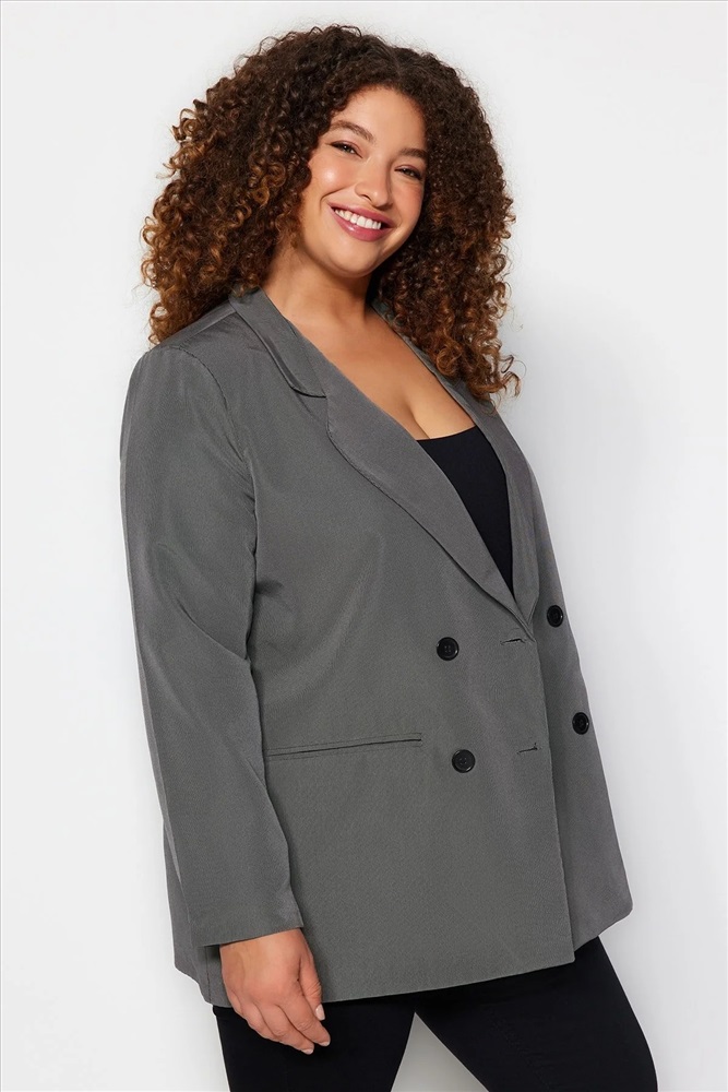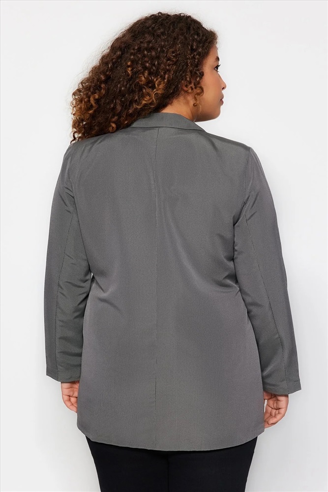 Gri Kruvaze Kapama Astarlı Büyük Beden Blazer Ceket TBBAW24AG00003