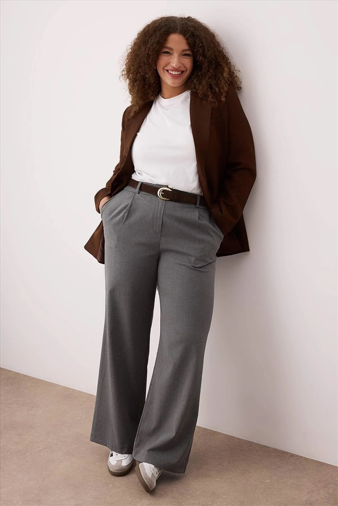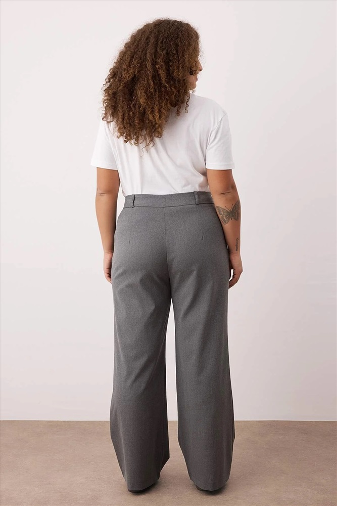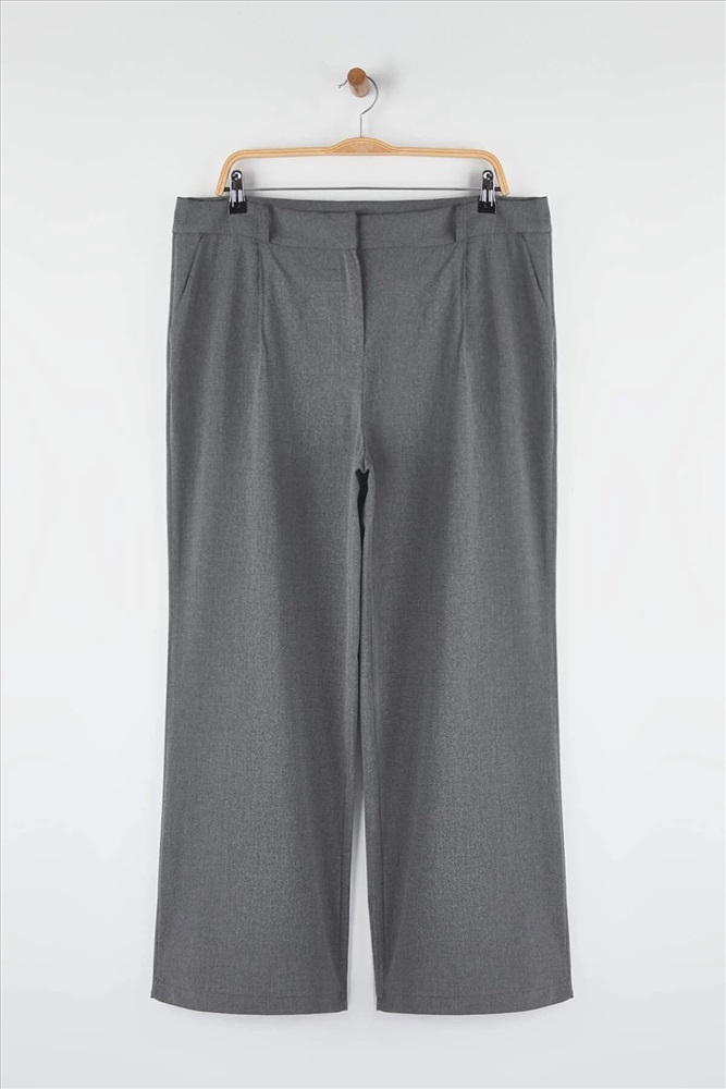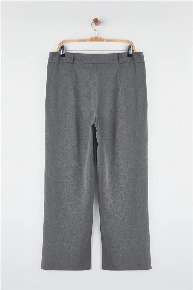 Gri Lastik Belli Wide Leg Büyük Beden Dokuma Pantolon TBBAW26AR00019