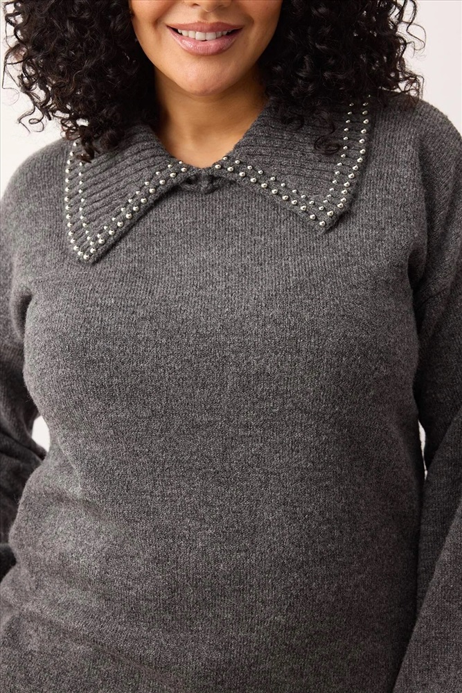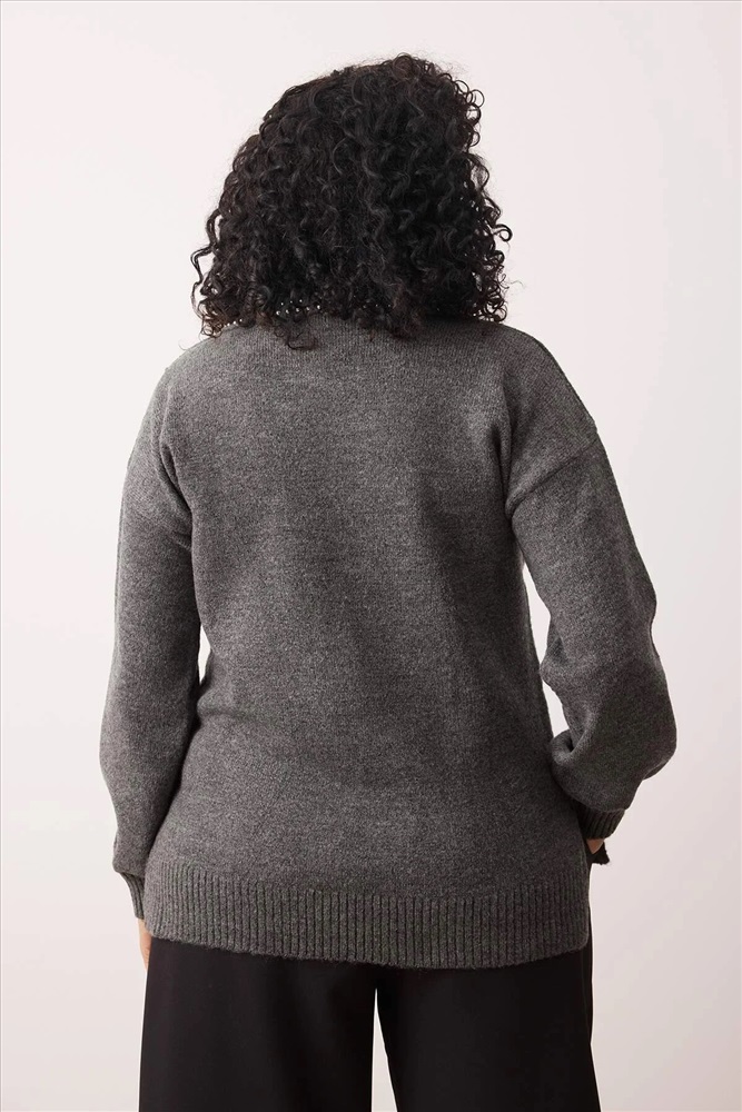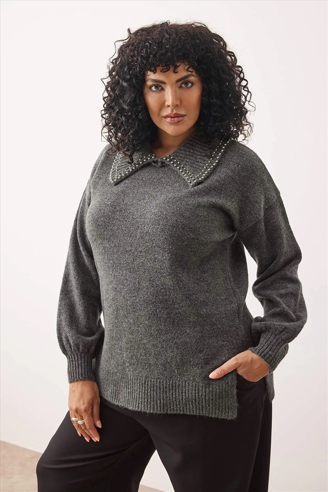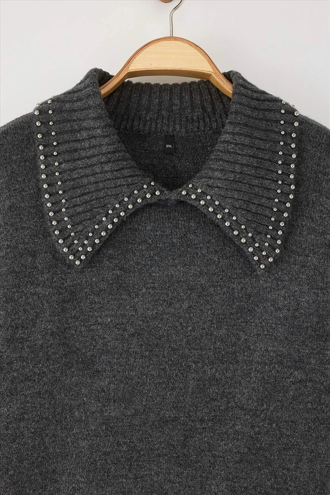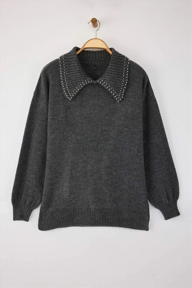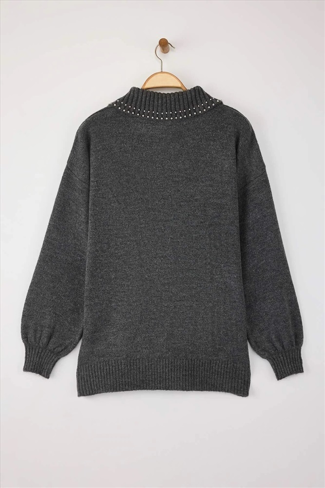 Gri Yakası Taş Detaylı Triko Kazak TBBAW26AN00001