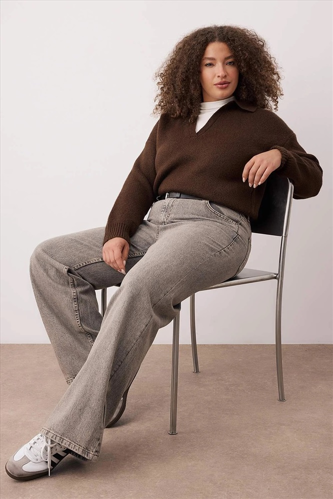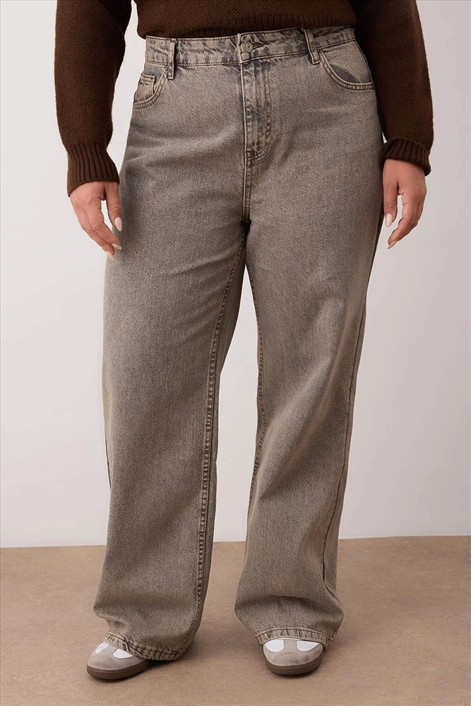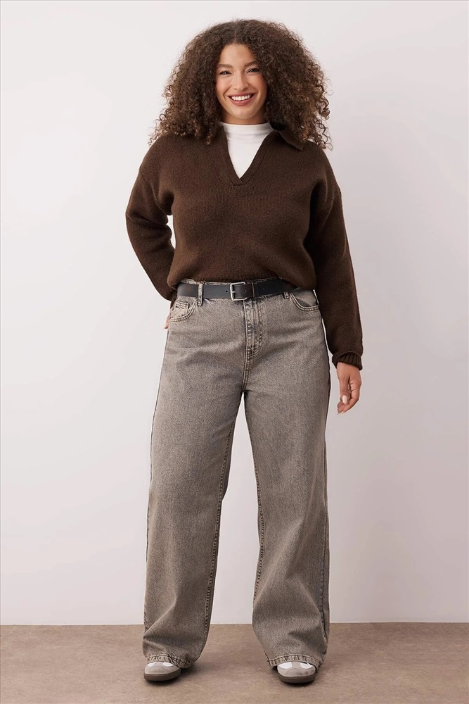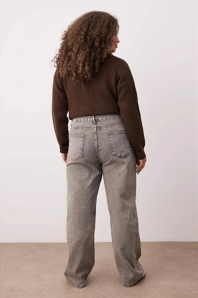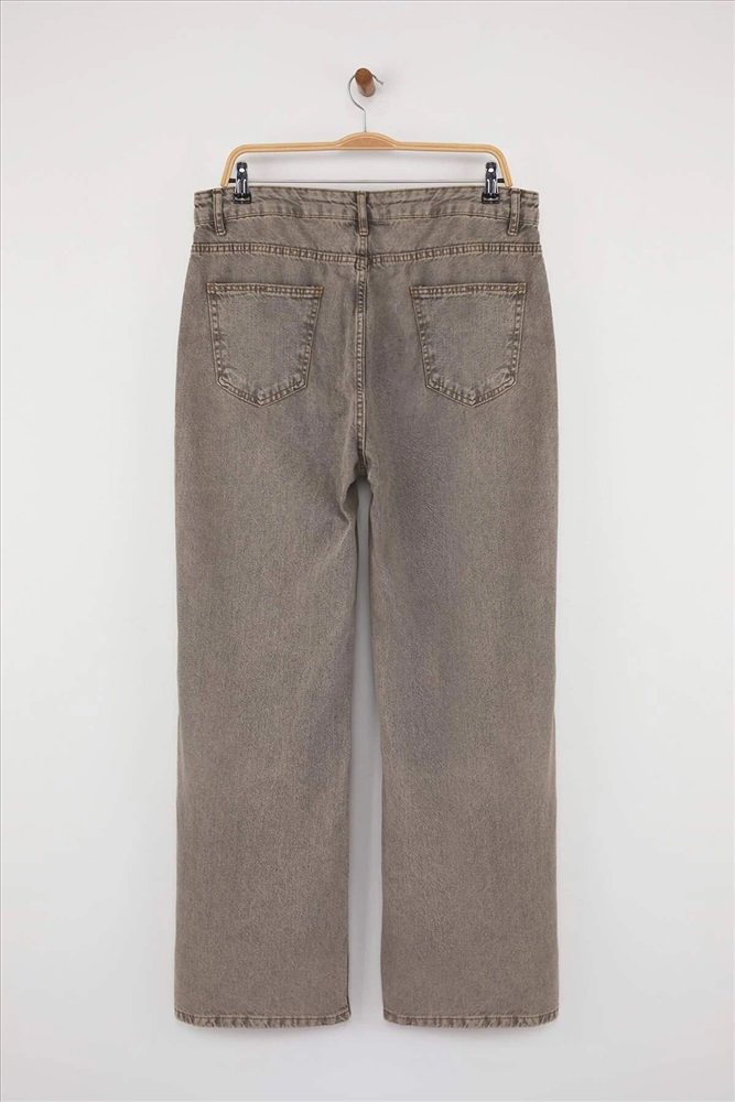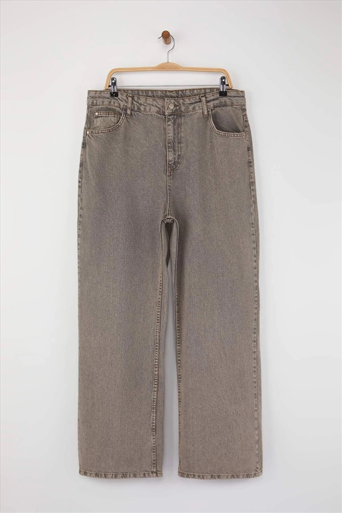 Gri Yüksek Bel Geniş Paça Denim Büyük Beden Jeans TBBSS24CJ00028