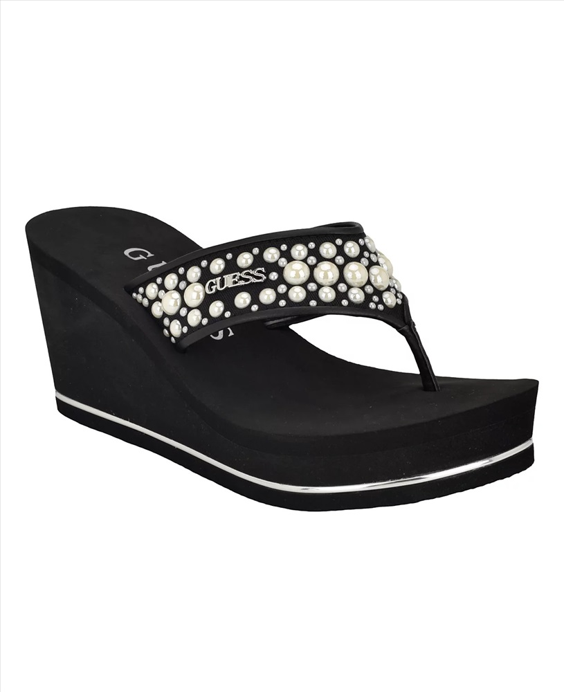 GUESS Women's Silus Embellished Platform Wedge Sandals