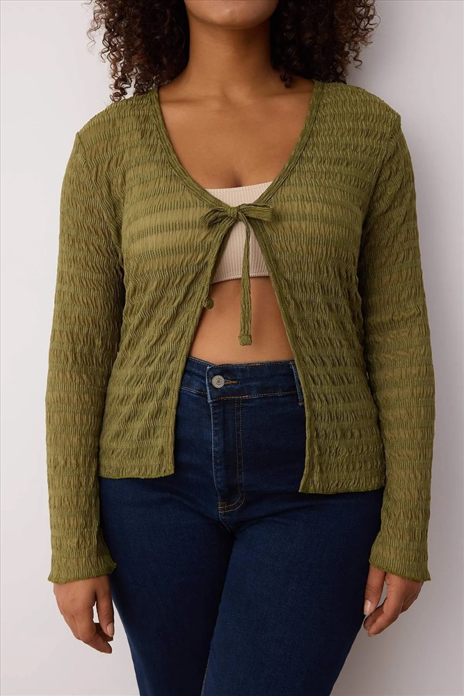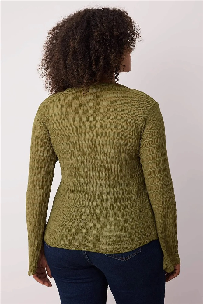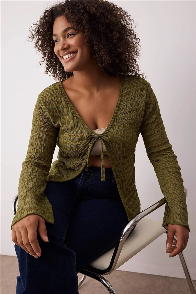 Kalıp: Regular Desen: Dokulu Yaka Tipi: V Yaka Kumaş Tipi: Örme Kol Tipi: Standart Kol Renk: Haki Ortam: Casual/Günlük Boy: Crop Kol Boyu: Uzun Persona: Cool & Comfort Dokuma Tipi: Gofre Materyal Bileşeni: 98% Polyester,2% Elastan Yıkama Talimatı: T10 Sezon: İlkbahar / Sonbahar Menşei: TR Комментарии к товару
